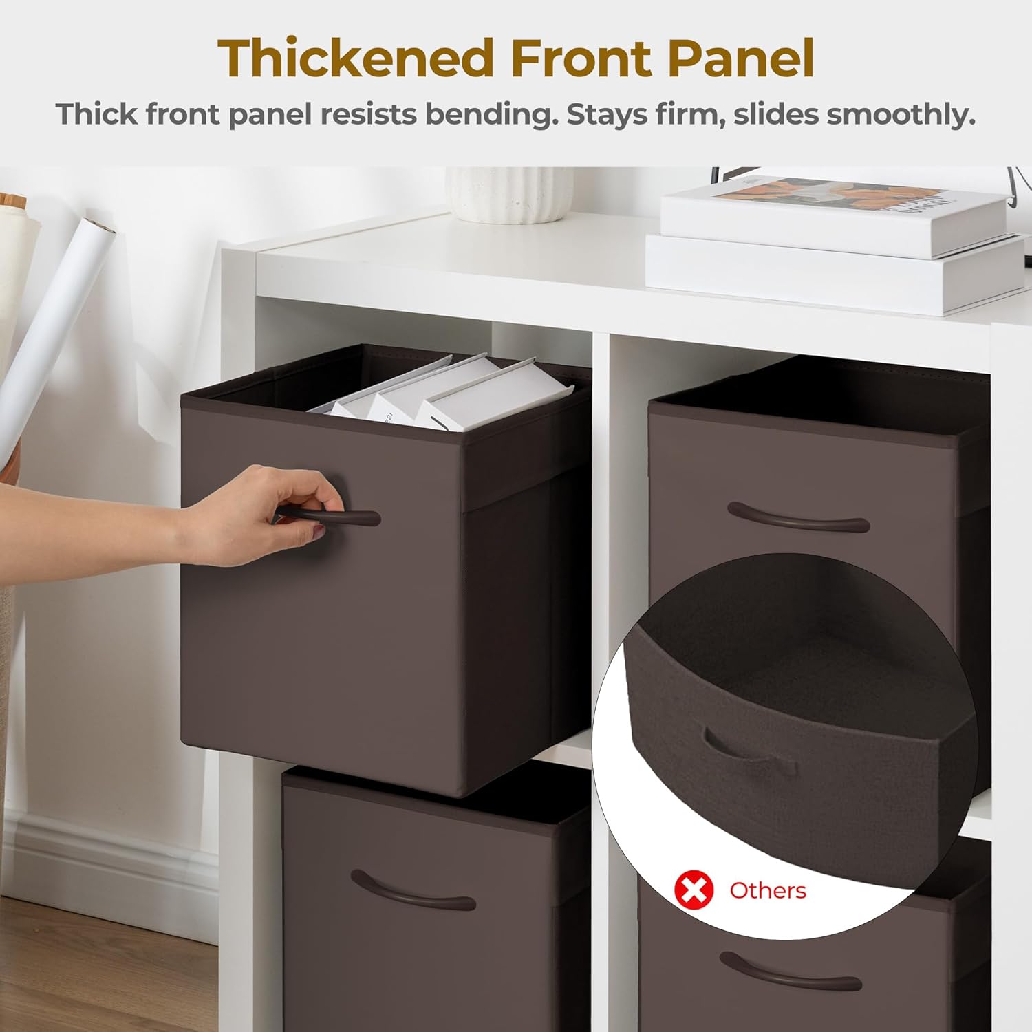 StorageWorks Brown Storage Cubes, 11 Inch Cube Storage Bins with Handle, Cube Storage Organizer Bins for Shelves and Closet, Collapsible Storage Bins, 4-Pack