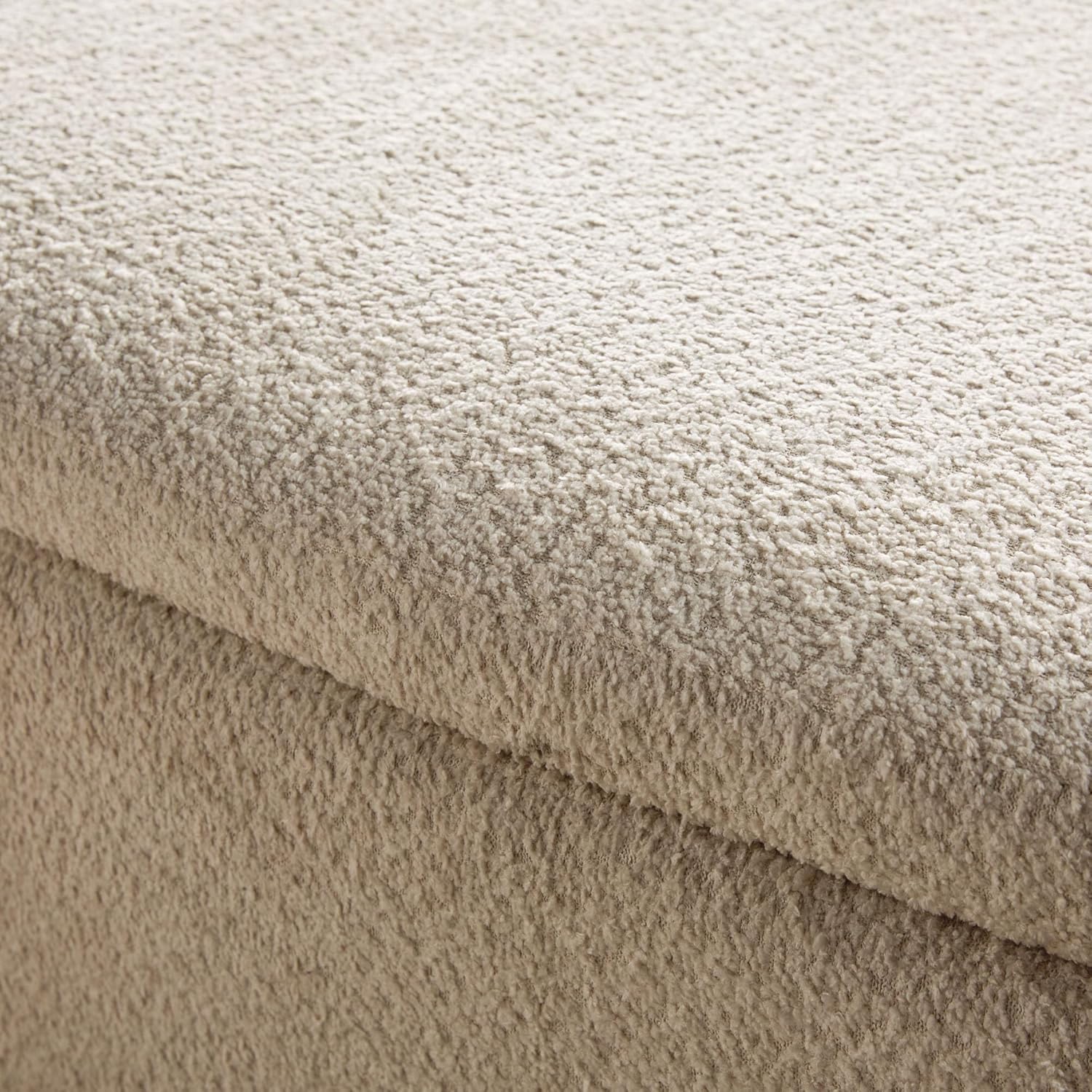 Walker Edison Linley Contemporary Large Storage Bouclé Ottoman with Wood Legs, Ivory