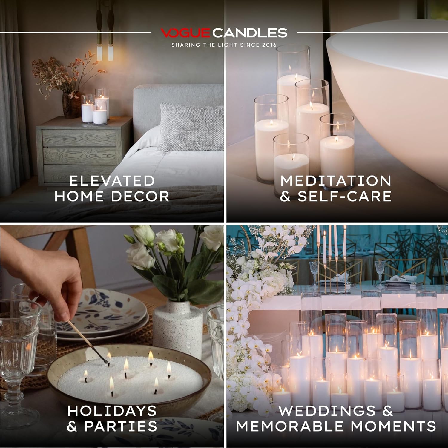 - Celebrity Favored Candle Experience, Now in Your Home: As seen at high-profile events and luxury venues, Vogue Candles made such an impression that guests kept asking to take them home. Now you can. Bring that same exclusive ambiance into your space, wherever you are, with a real flame that looks as elevated as it feels.