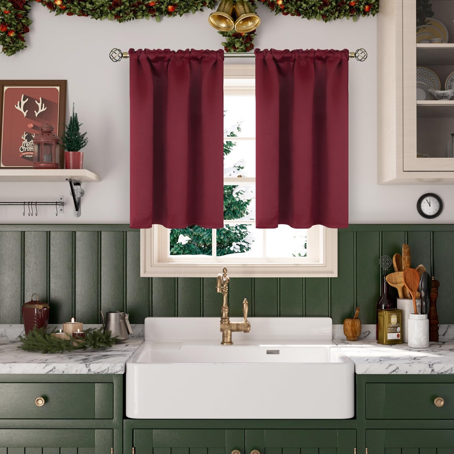 BGment Burgundy Blackout Curtains for Kitchen Cafe Window - Short Half Window Drapes Thermal Insulated Privacy for Rv Bathroom, 34 x 40 Inch, 2 Panels