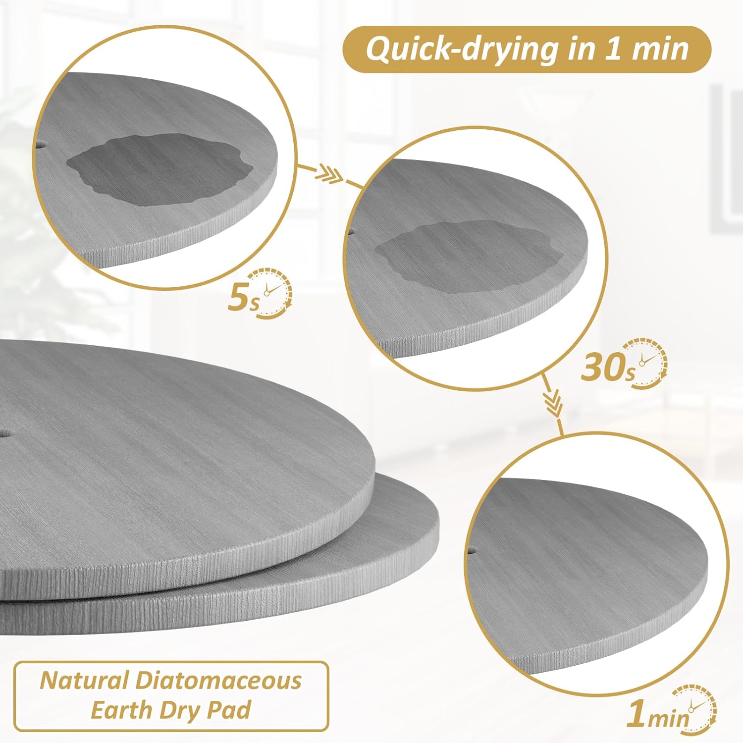 - Kitchen Instant-Drying Utensil Holder: This silverware caddy comes with instant dry diatomite stone pad at bottom, which is made from natural diatomaceous earth ,well performace for its exceptional water adsorption capabilities and reliability. They can automatically absorbs water and dries in a few minutes.This diatomite stone caddy can be used as a utensil drying rack which keeps your kitchen countertop more dry and tidy ,no more wiping countertops or scrubbing moldy residue.