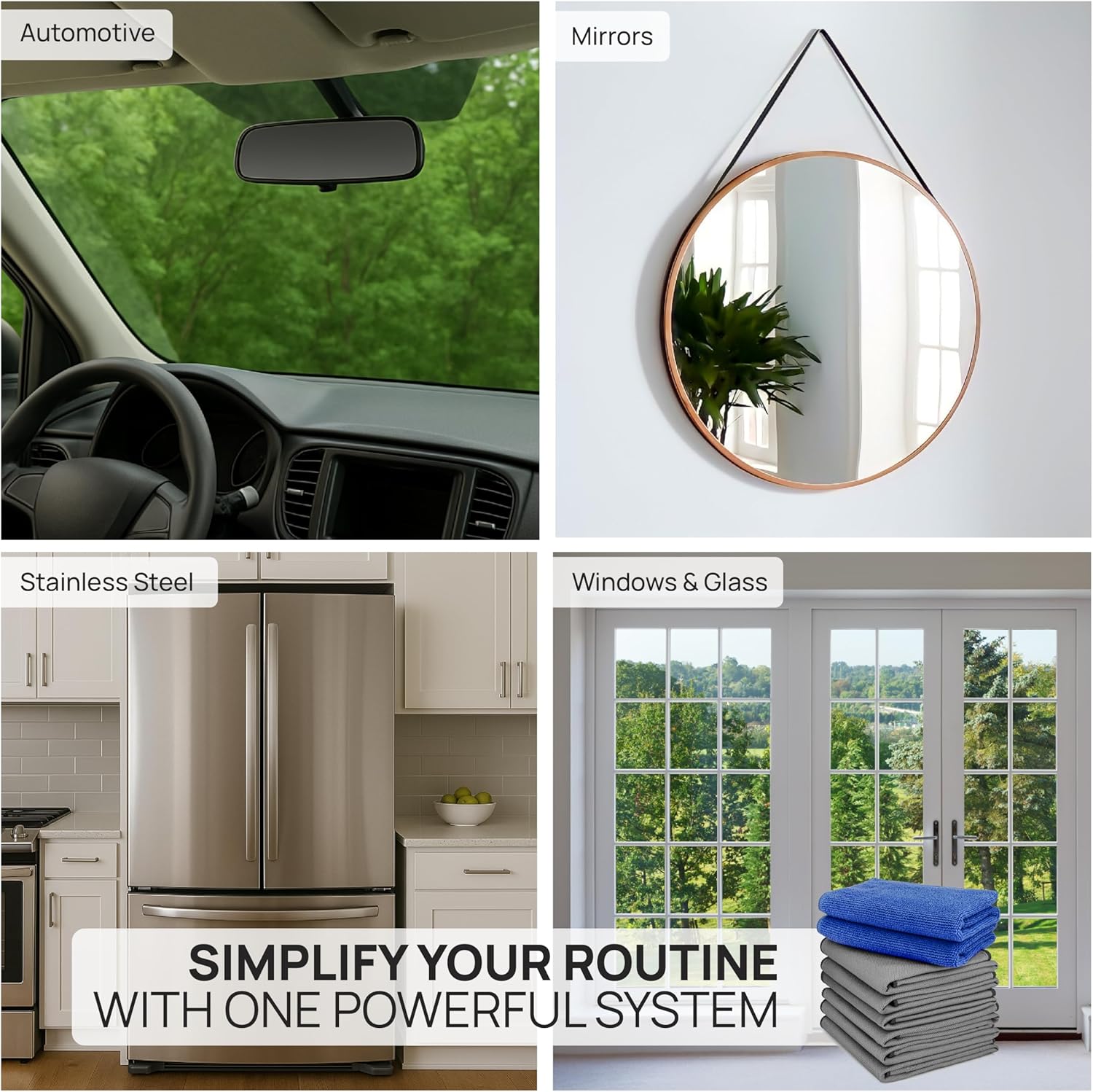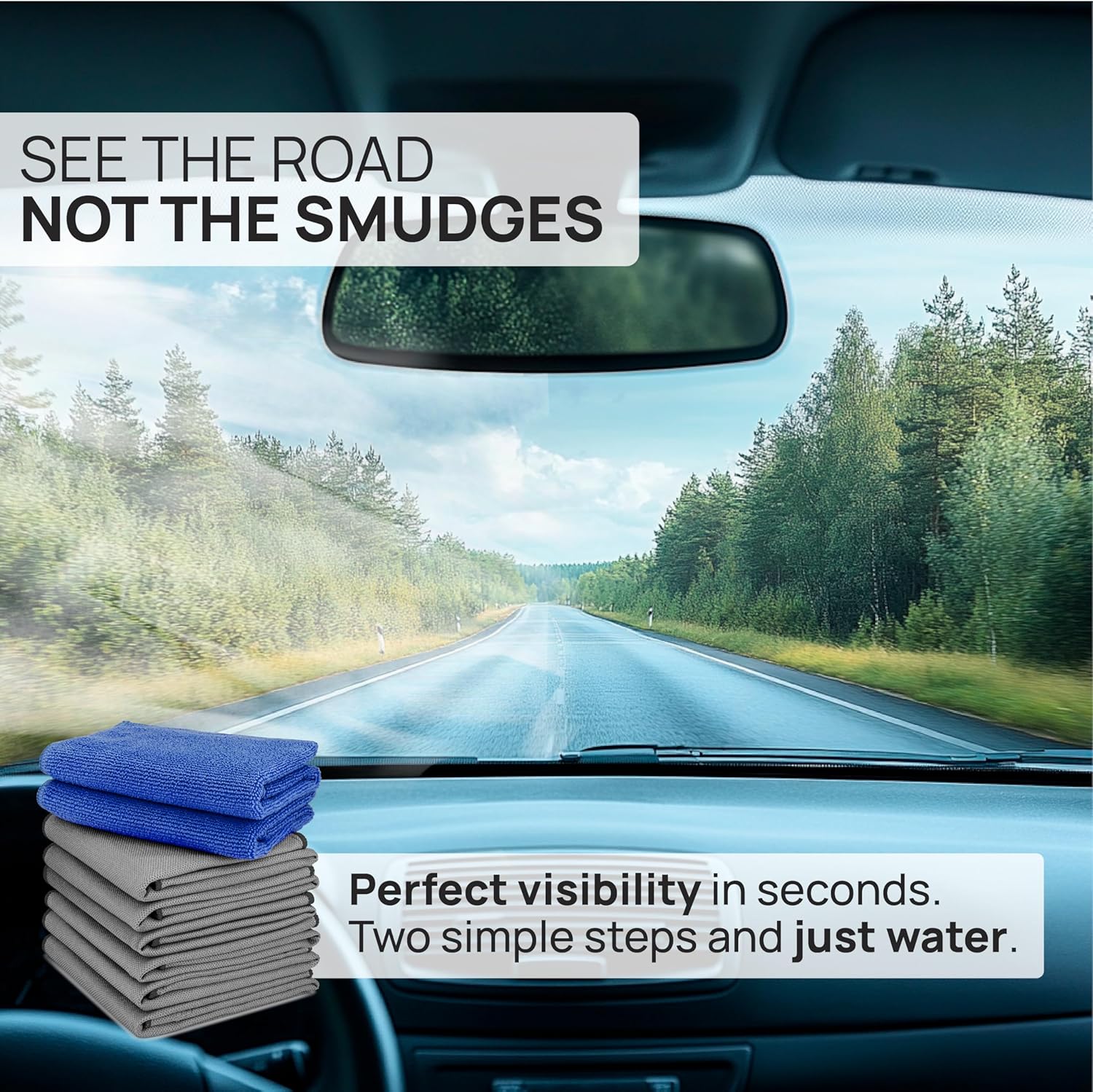 - 2-Step Streak-Free Clarity - Eliminate smudges, fog, and haze with Claro 2-cloth process: Use the damp blue cloth to remove grime, then follow up with the dry gray microfiber cleaning cloth for cars.