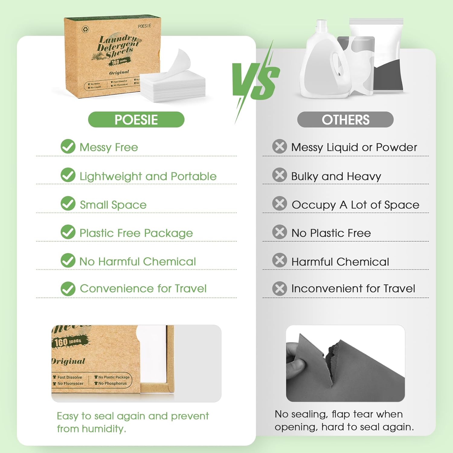Poesie Laundry Detergent Sheets Original(Rainy Glass) Scent 160 Count Camping Hiking RV Trip Liquidless Clothes Laundry Detergent Strips for Travel Hotel Sink Dorm Home Outdoor