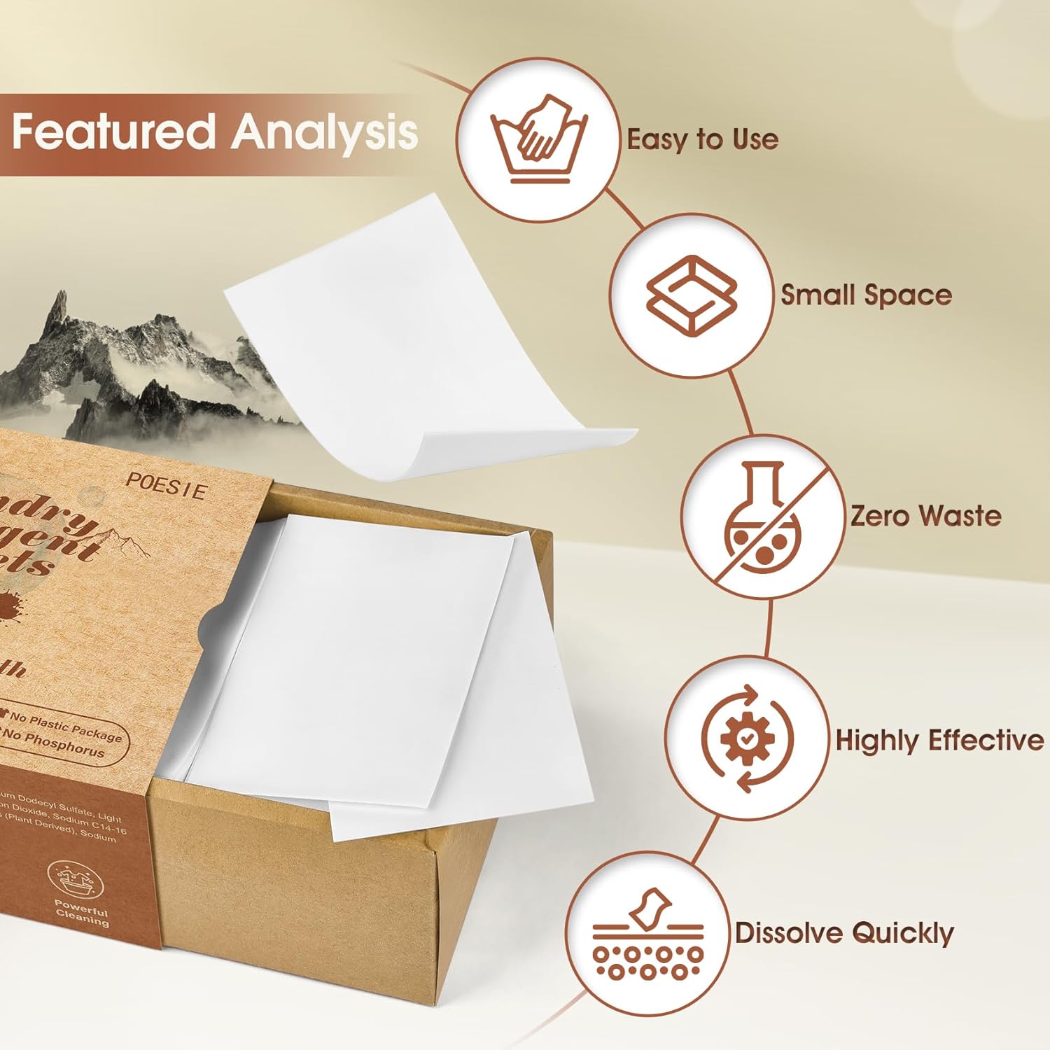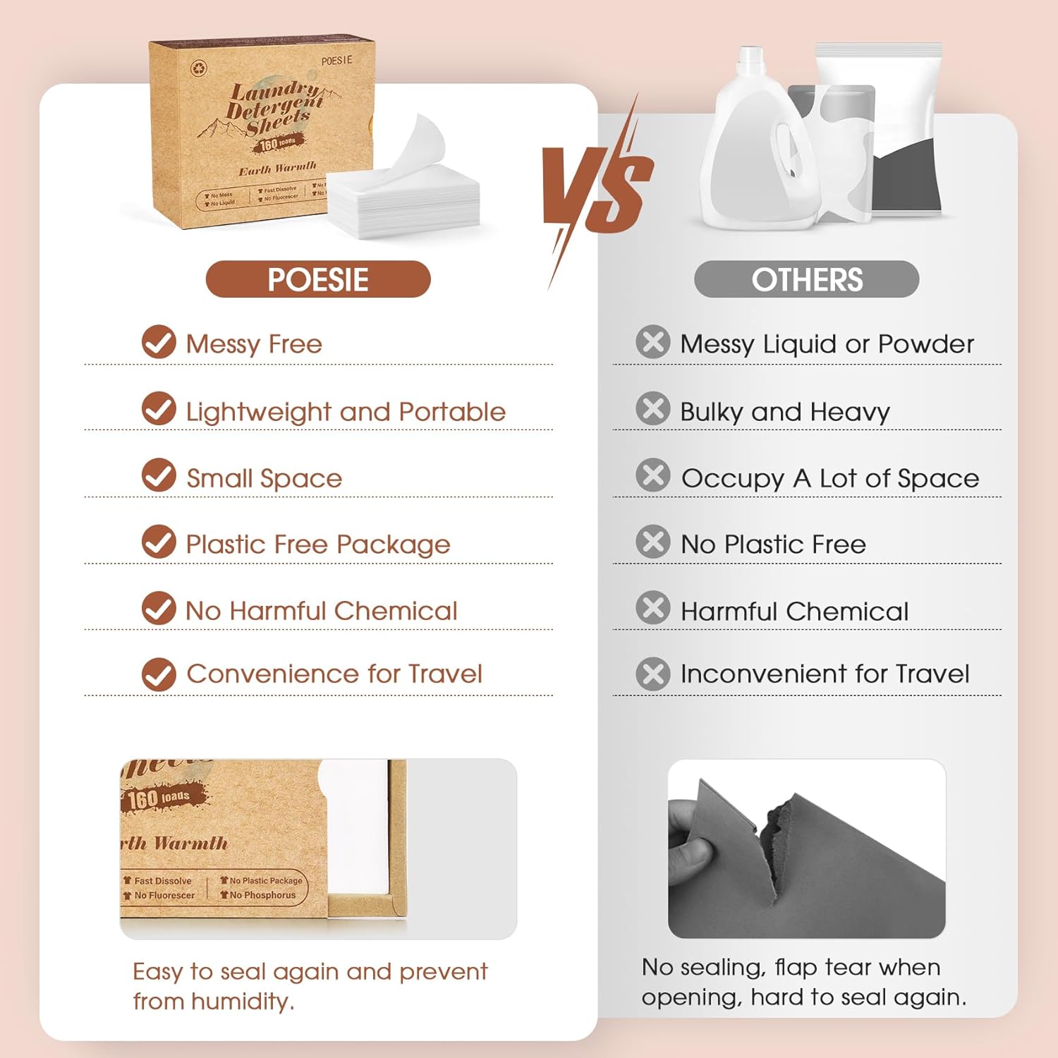 Poesie Laundry Detergent Sheets Earth Warmth Scent 160 Count Road Trip College Dorm Essentials for Travel Washing Sheets Detergent Liquidless Portable No Messy Laundry Strips