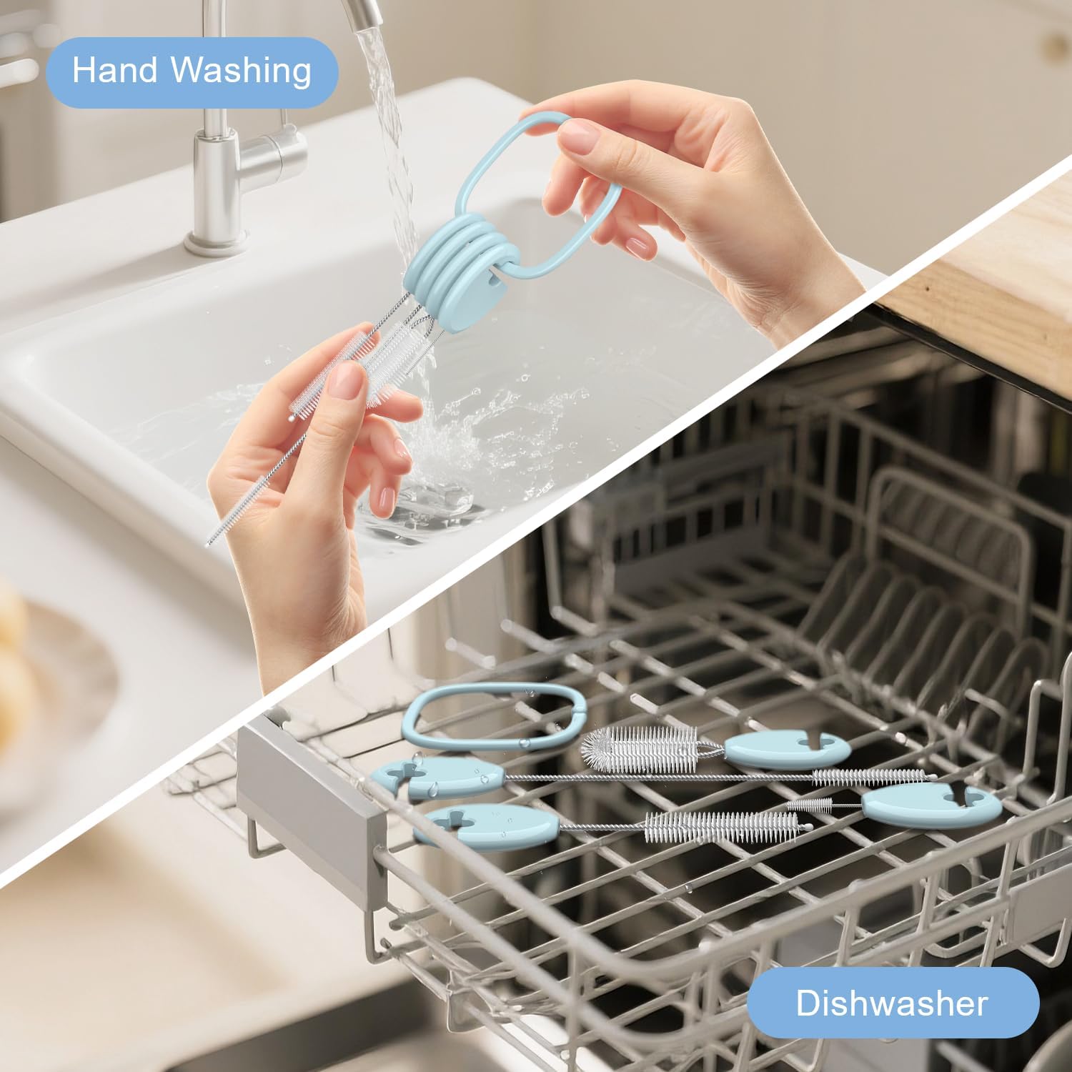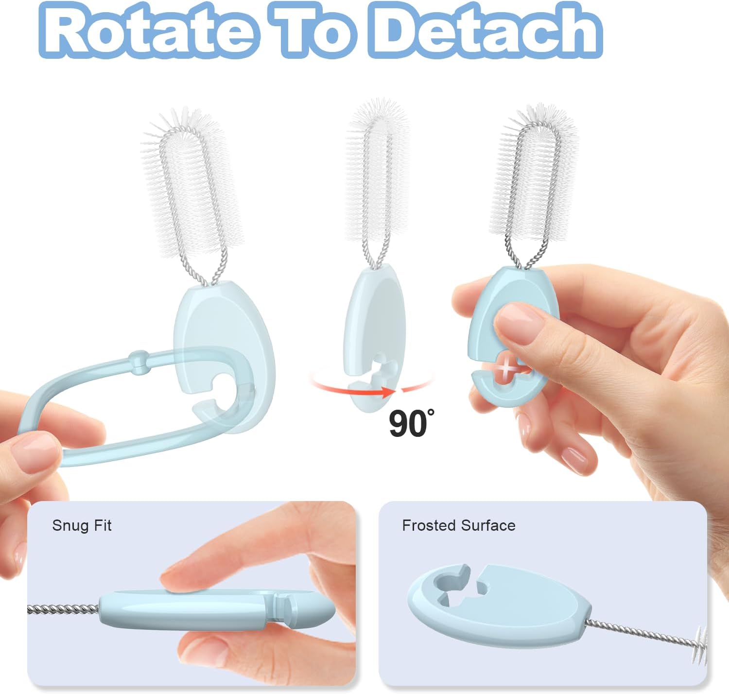 YOTIME Standing Straw Cleaner Brush Set, 4in1 Reusable Straw Brushes with Holder Ring, for Baby Bottles, Sippy Cups and Lids, Blue