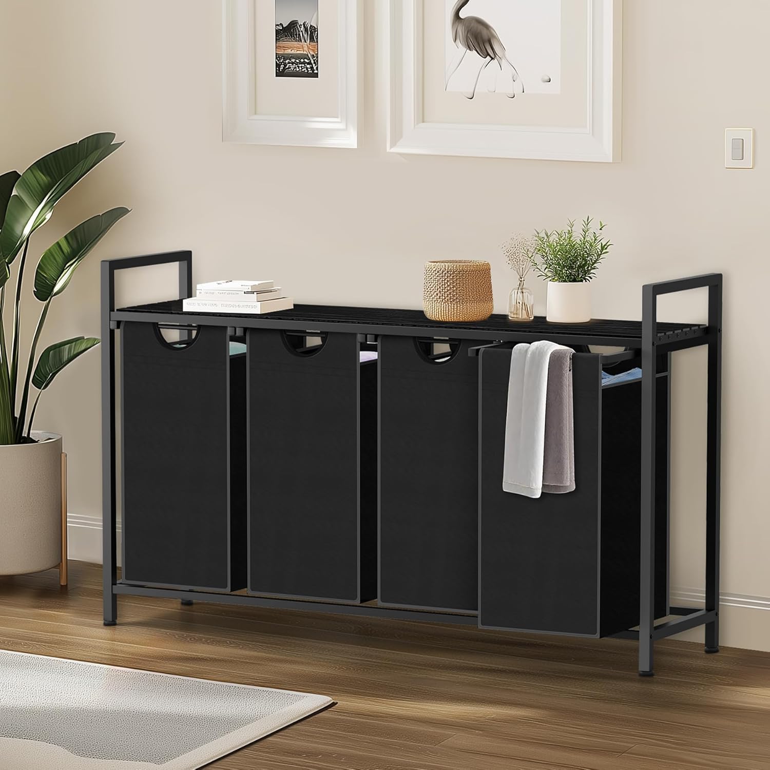 Laundry Hamper, Laundry Sorter with 4 Pull-Out Removable Oxford Fabric Bags Cloth Laundry Basket 4 x 10 Gallons (Charcoal Black)