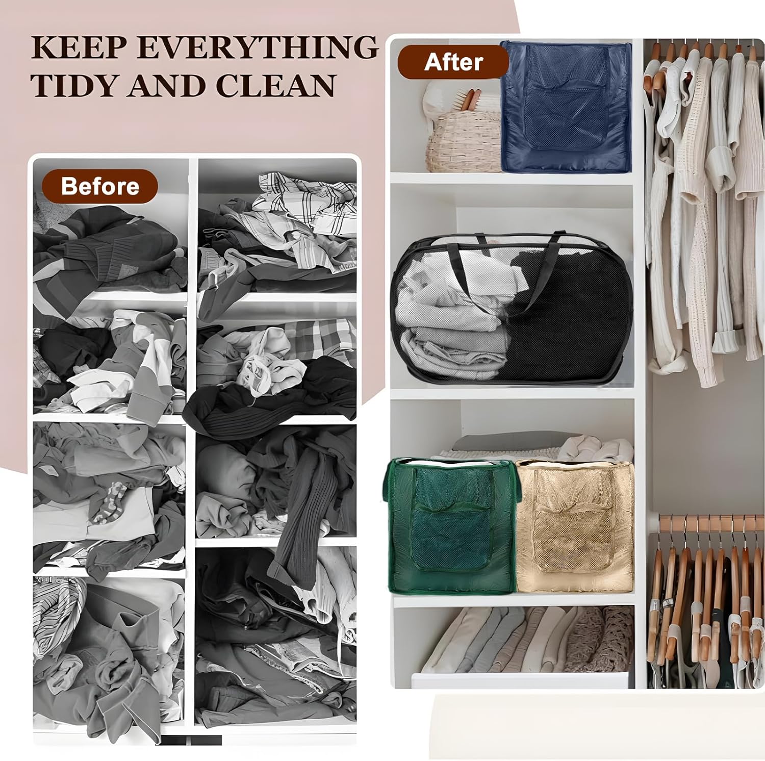 - 【CONVENIENT HANDLES】Our closet storage bins come with two sturdy handles on each side that make it easy to carry and transport items from one room to another. These handles are also designed to provide a comfortable grip, ensuring that you can easily move your storage baskets for organizing around without any strain on your hands