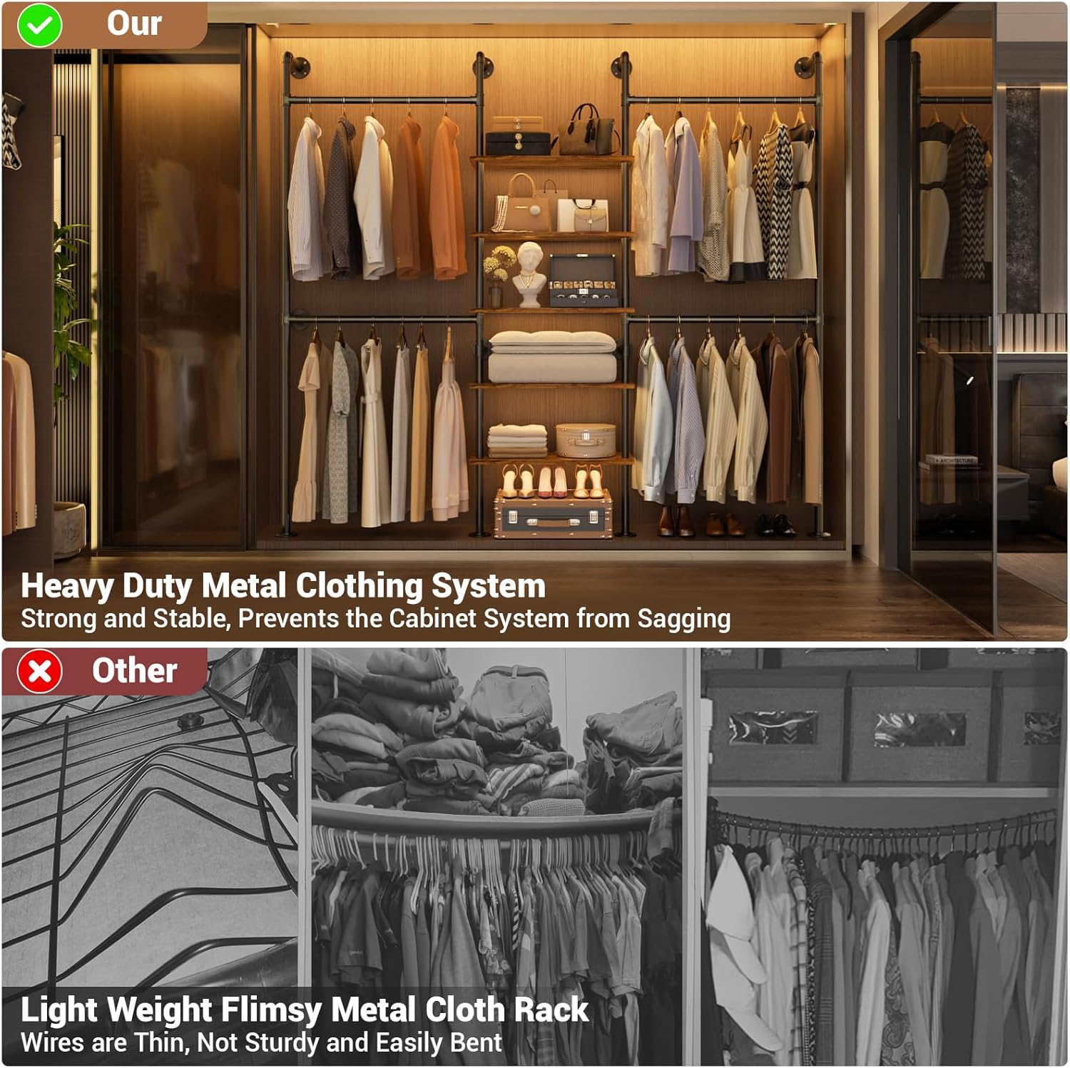 - 【Easy to Assembly & Exceptional Customer Service】The Pipe clothes rack poles connect directly via threaded joints, quick and simple setup, no additional tools required for your new modern closet systems. We provide lifetime customer support, No matter before or after-sales, Any problems pls contact us, our experienced customer service team will respond in 24 hours ASAP.
