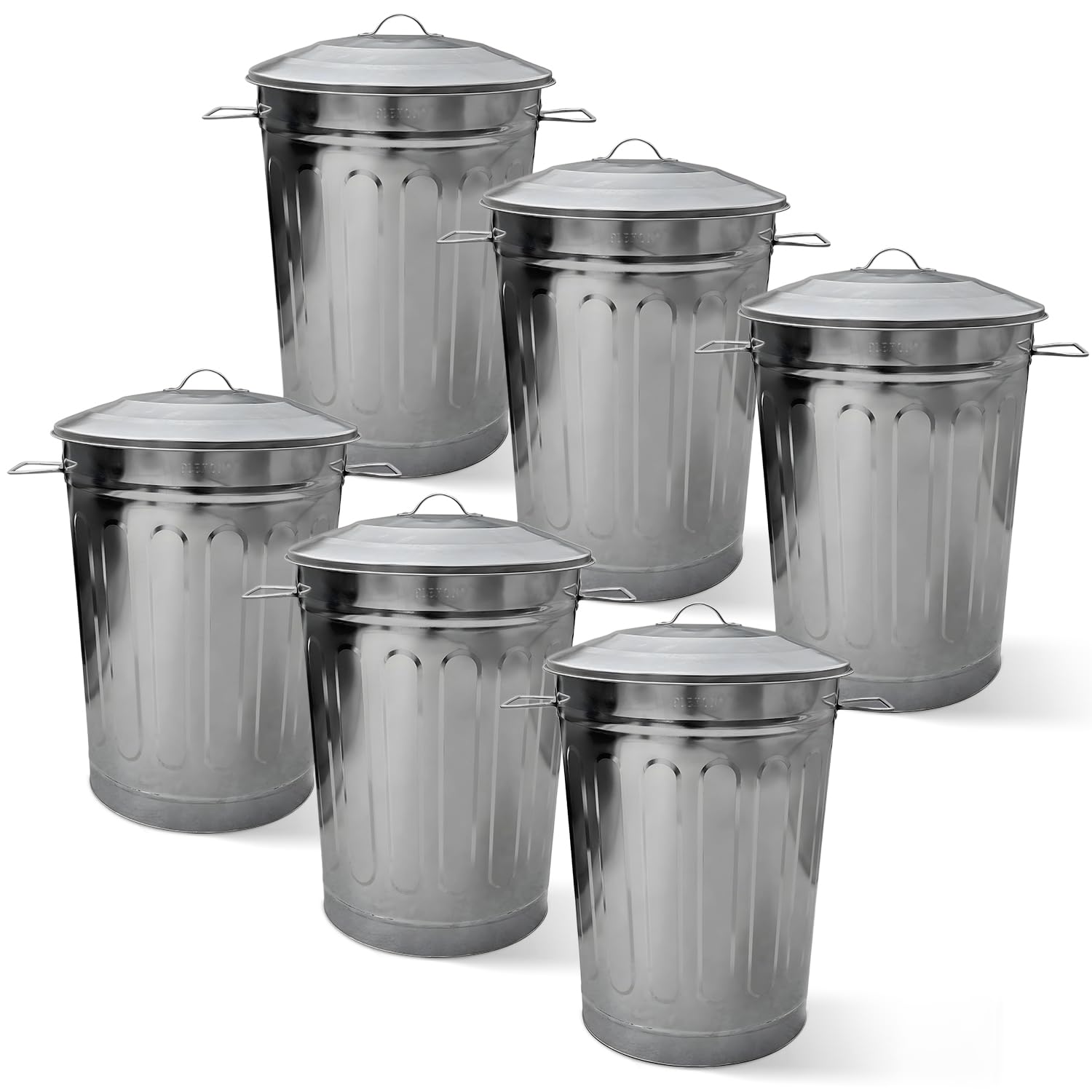 - Set includes: 6 x Plexon 13-Gallon Galvanized Steel Round Trash Can with Lid