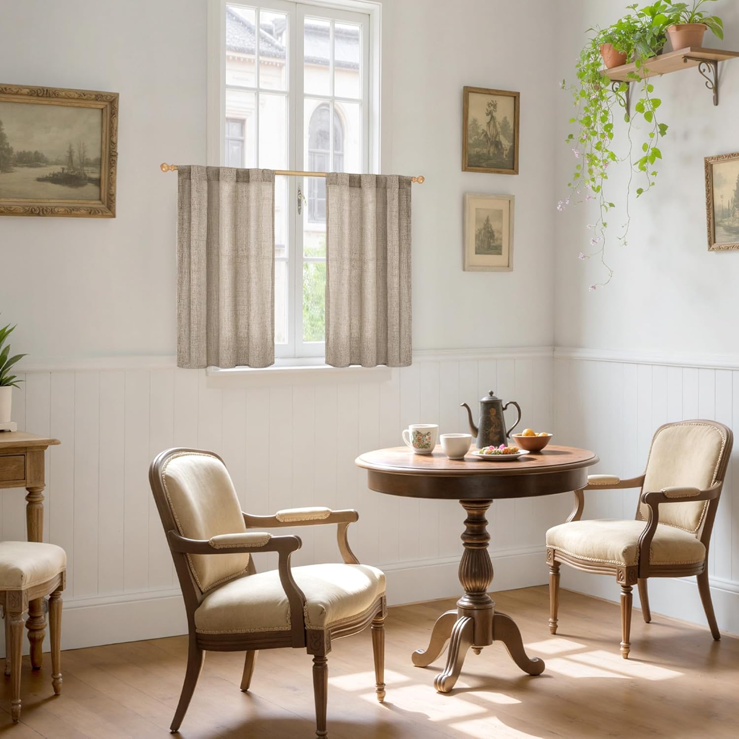 YoungsTex Small Linen Curtains 36 Inch Length for Kitchen Window Over Sink, Cafe Drapes Semi Sheer with Rod Pocket Back Tab Light Filtering for Bathroom Window, Dark Oatmeal, 2 Panels, 30 X 36 Inch