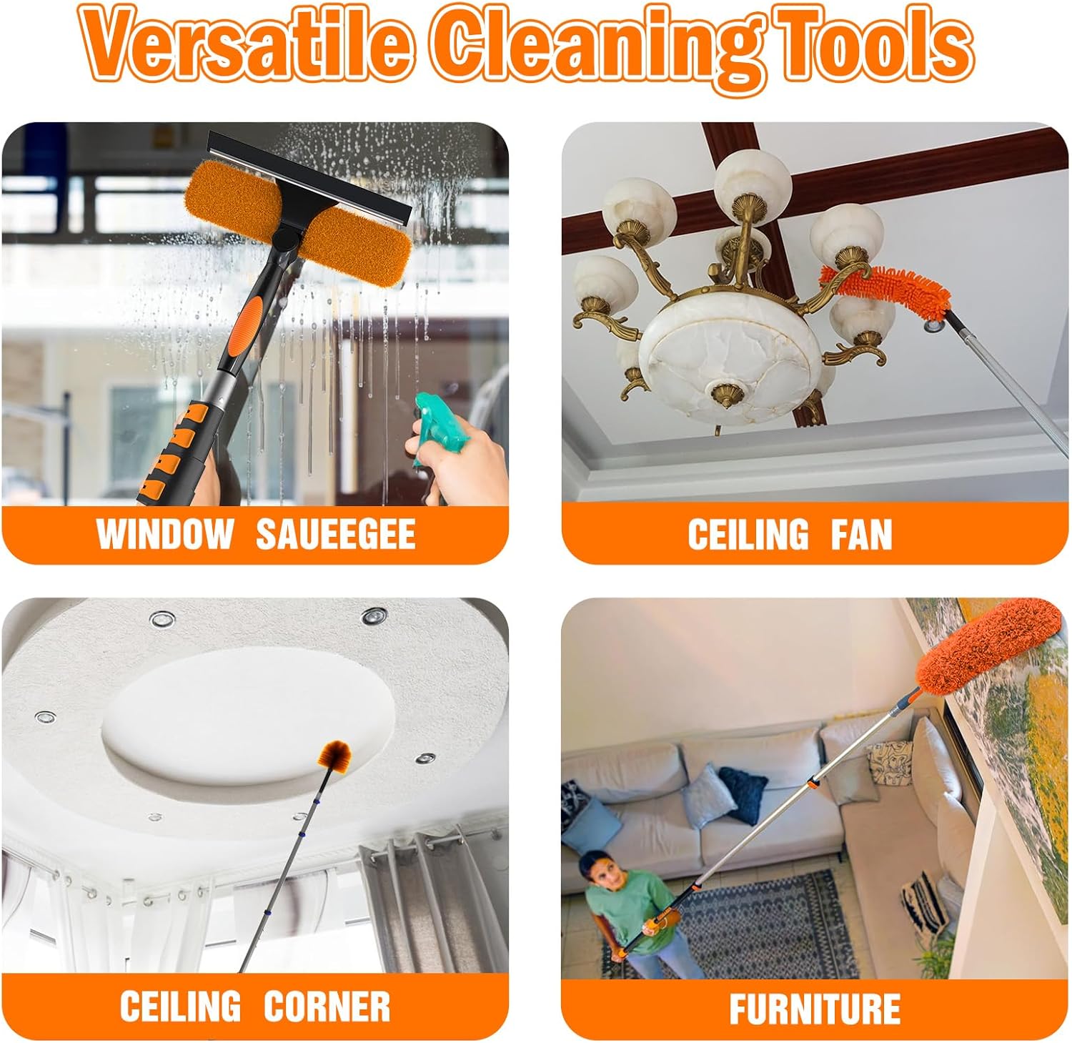 36FT High Reach Duster Cleaning Kit with Extension Pole, High Ceiling Fan Cleaner Duster Tool for Fan Blades, Window Washing Kit with Microfiber Feather Duster & Window Squeegee