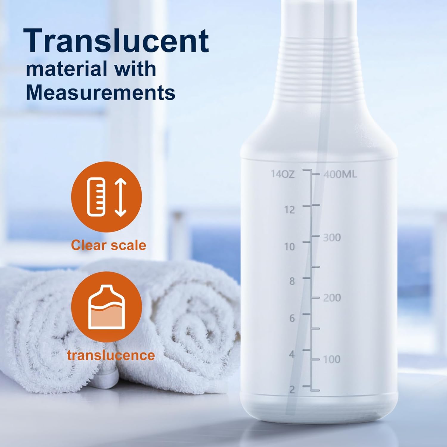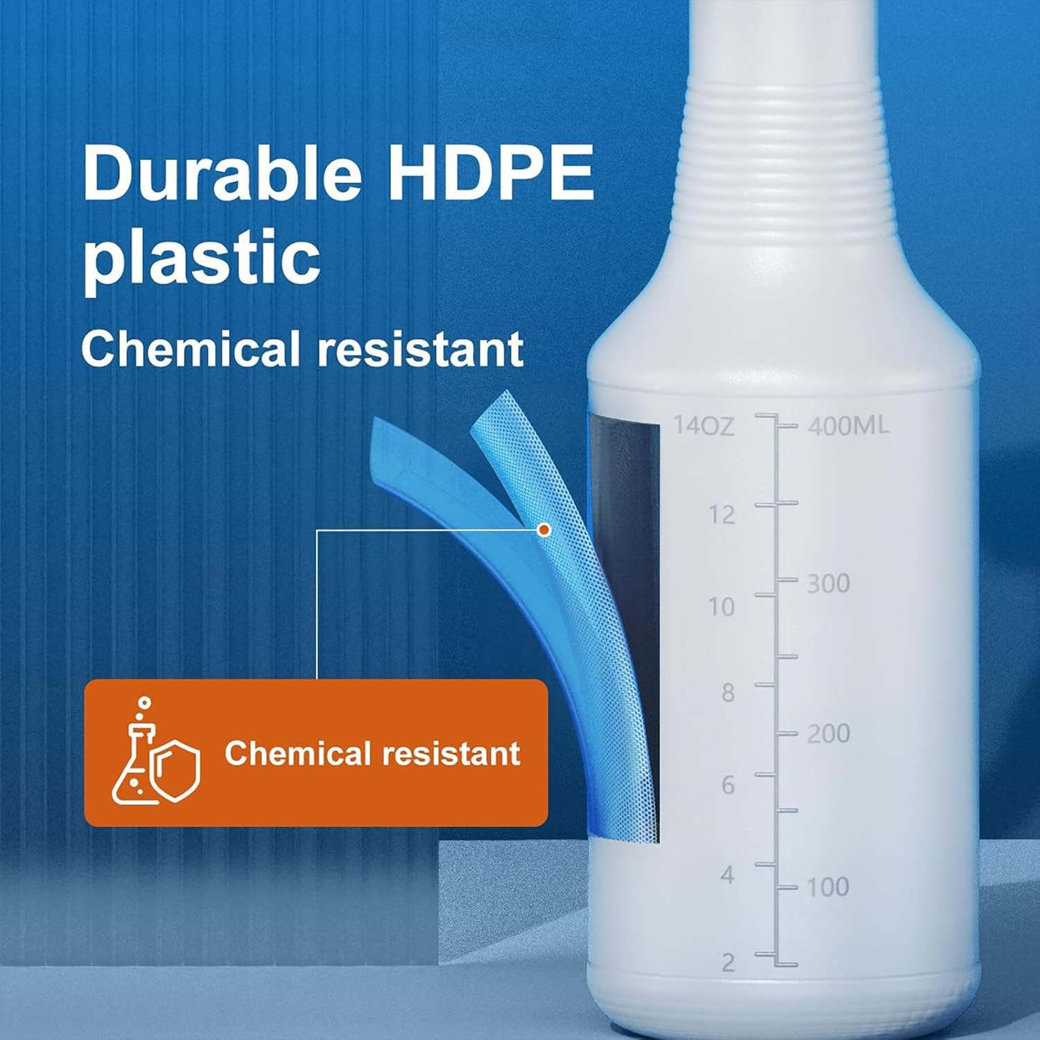 - 【DURABLE HDPE BOTTLES】 The (2 pcs, 16 Oz) strong spray bottles are made from durable HDPE plastic, BPA Free, which is chemically resistant, safe for chemical solutions like Bleach, Vinegar, Rubbing Alcohol, etc. and support long-term use. Withstands drops and won't shatter easily, is an ideal solution spray bottle.