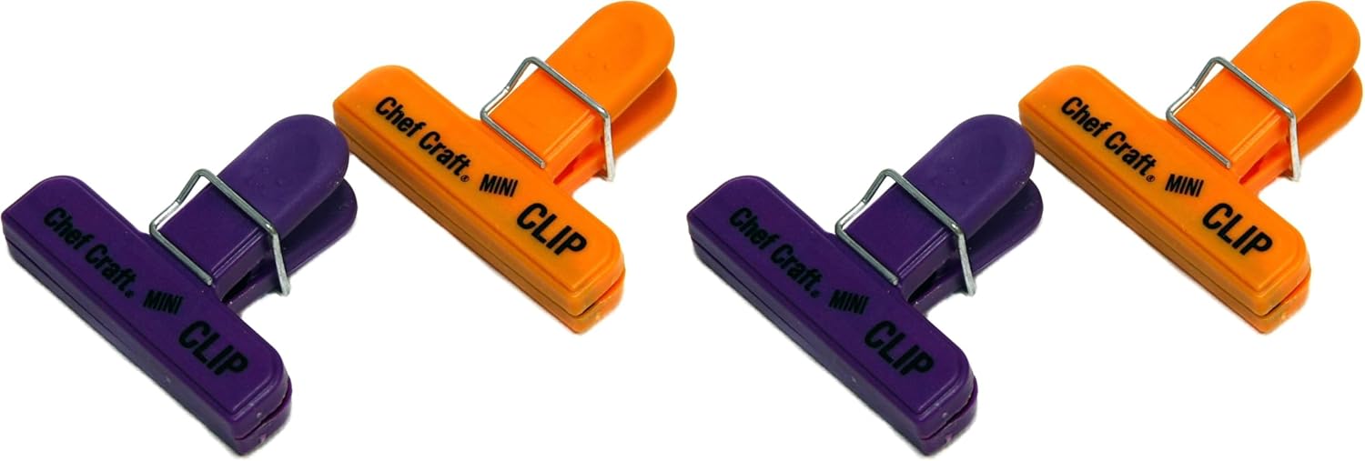 Chef Craft Select Plastic Mini Bag Clip, 3 inch Width 2 Piece Set, Purple/Orange (Pack of 2)