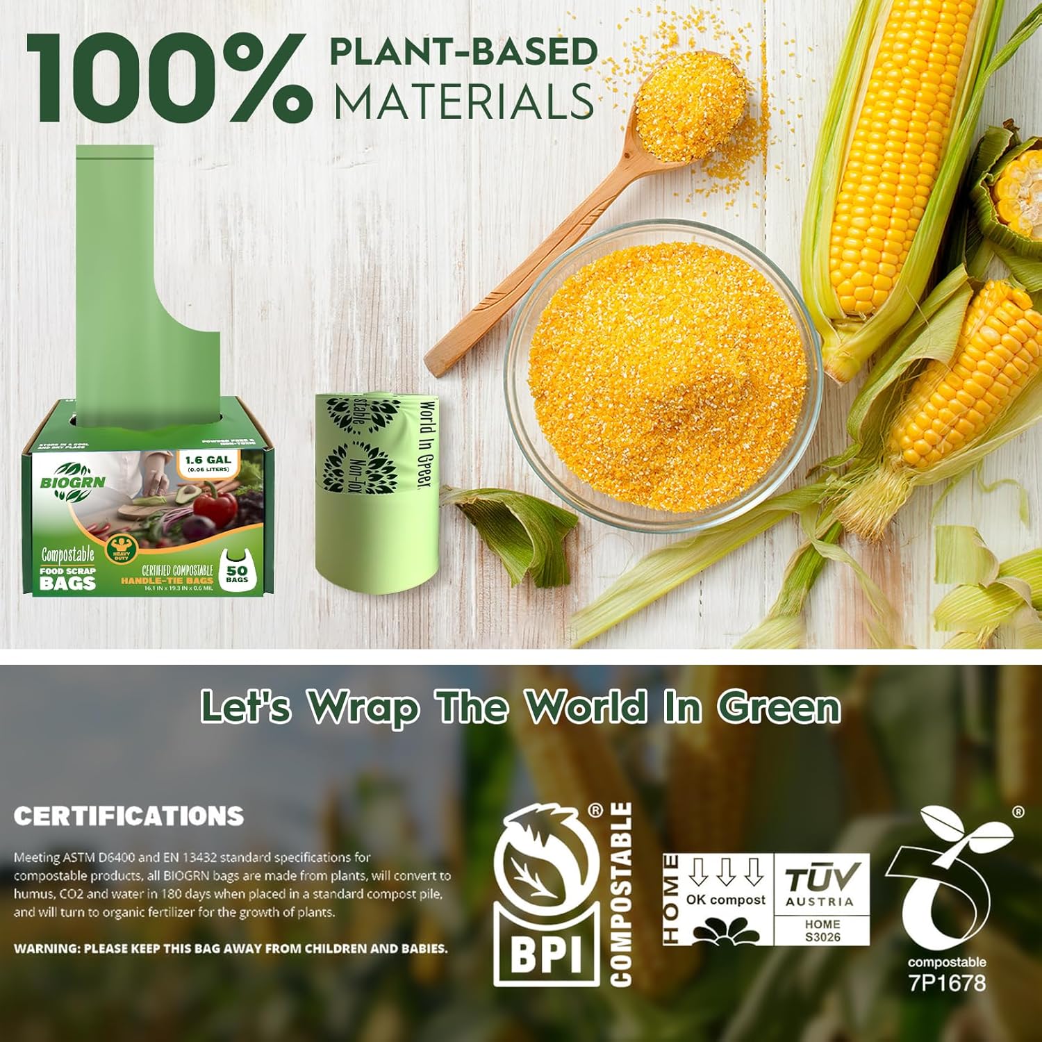 - Certified Reliability: Our 1.6 gallon compost bin bags are BPI-certified, OK Compost HOME and OK ompost INDUSTRIAL certified by TÜV Austria, and Seedling-certified by DIN CERTCO – fully complying with US ASTM D6400 and EU EN 13432 international standards.