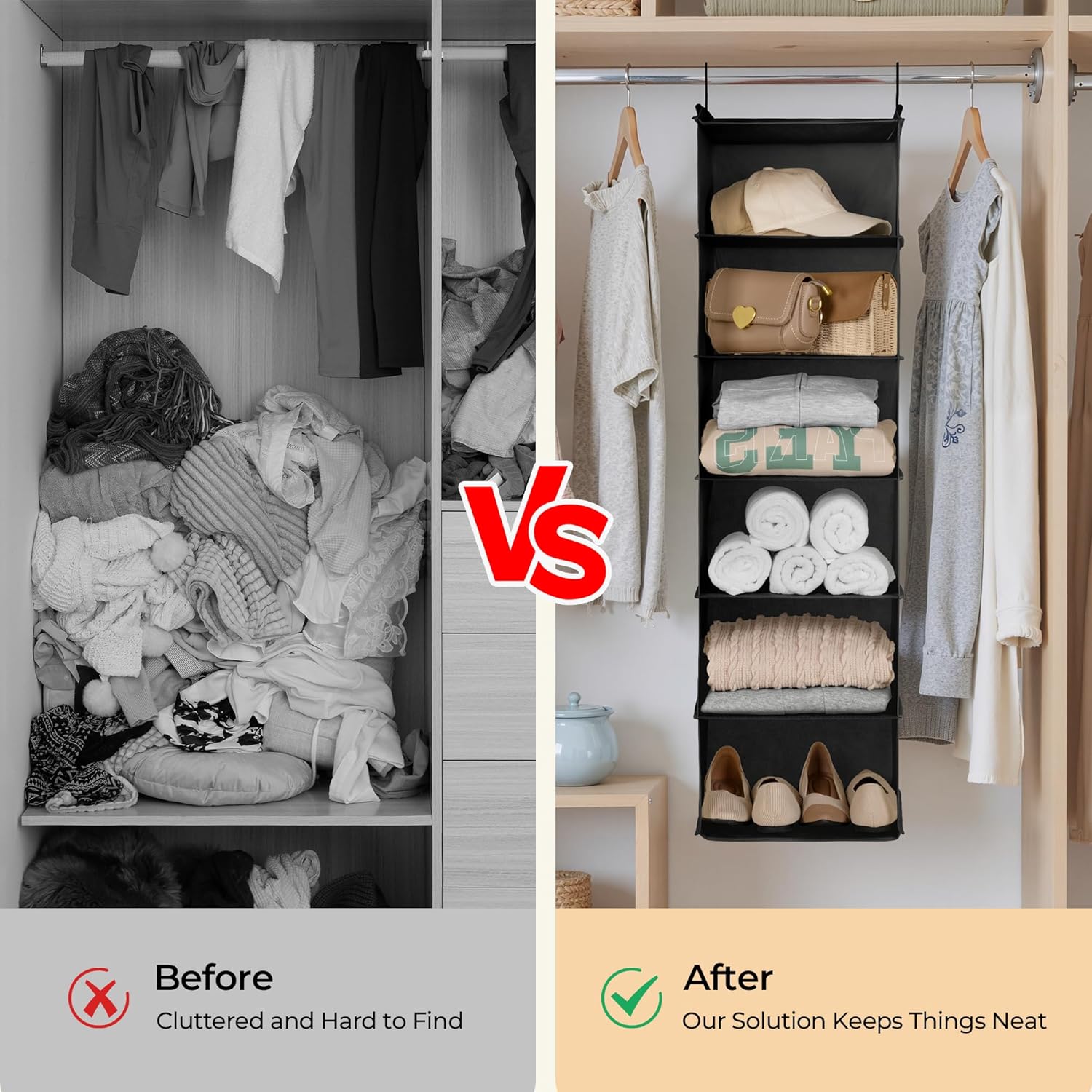 - Vertical Space Saving: The 6-shelf hanging shelf provides great accessibility and visibility, maximizing vertical space and organizing your room, making it perfect for small closets in bedrooms, RVs, college dorms, nurseries, and kids rooms.