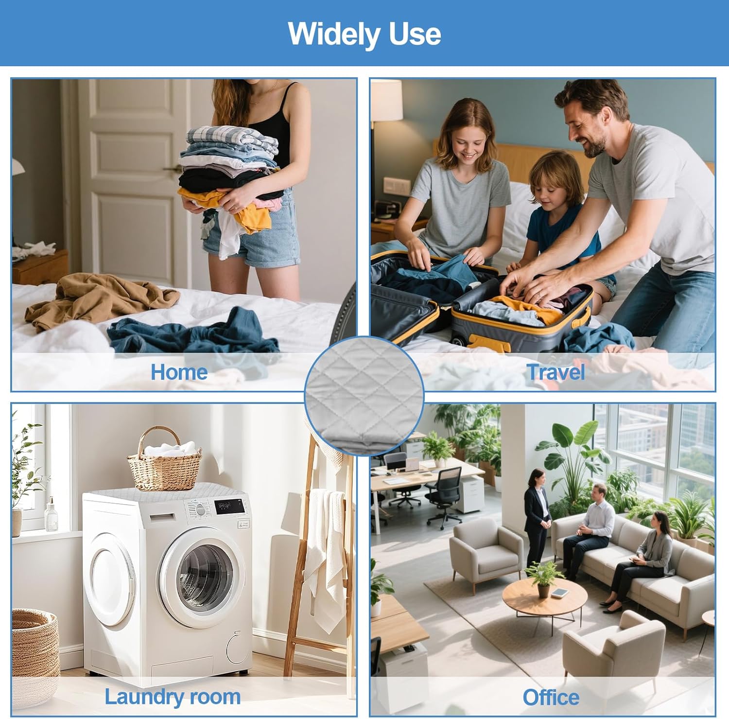 - Portable and Space-Saving: Measuring 33.5 x 17.7 inches (85 x 45 cm), this ironing mat is designed for ultimate convenience. It can be easily rolled or folded, making it ideal for compact living spaces like apartments, dorms, RVs, and laundry rooms. It can also serve as a protective cover for your washing machine or dryer.