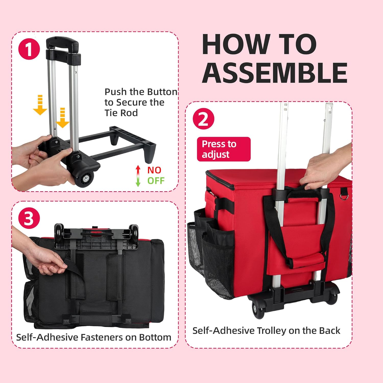 - Detachable and Foldable Trolley: Rolling cleaning caddy bag trolley features a retractable, stable handle with a cart height of 35.8in, Multiple Velcro straps secure the cleaning bag to the trolley to prevent tipping during use