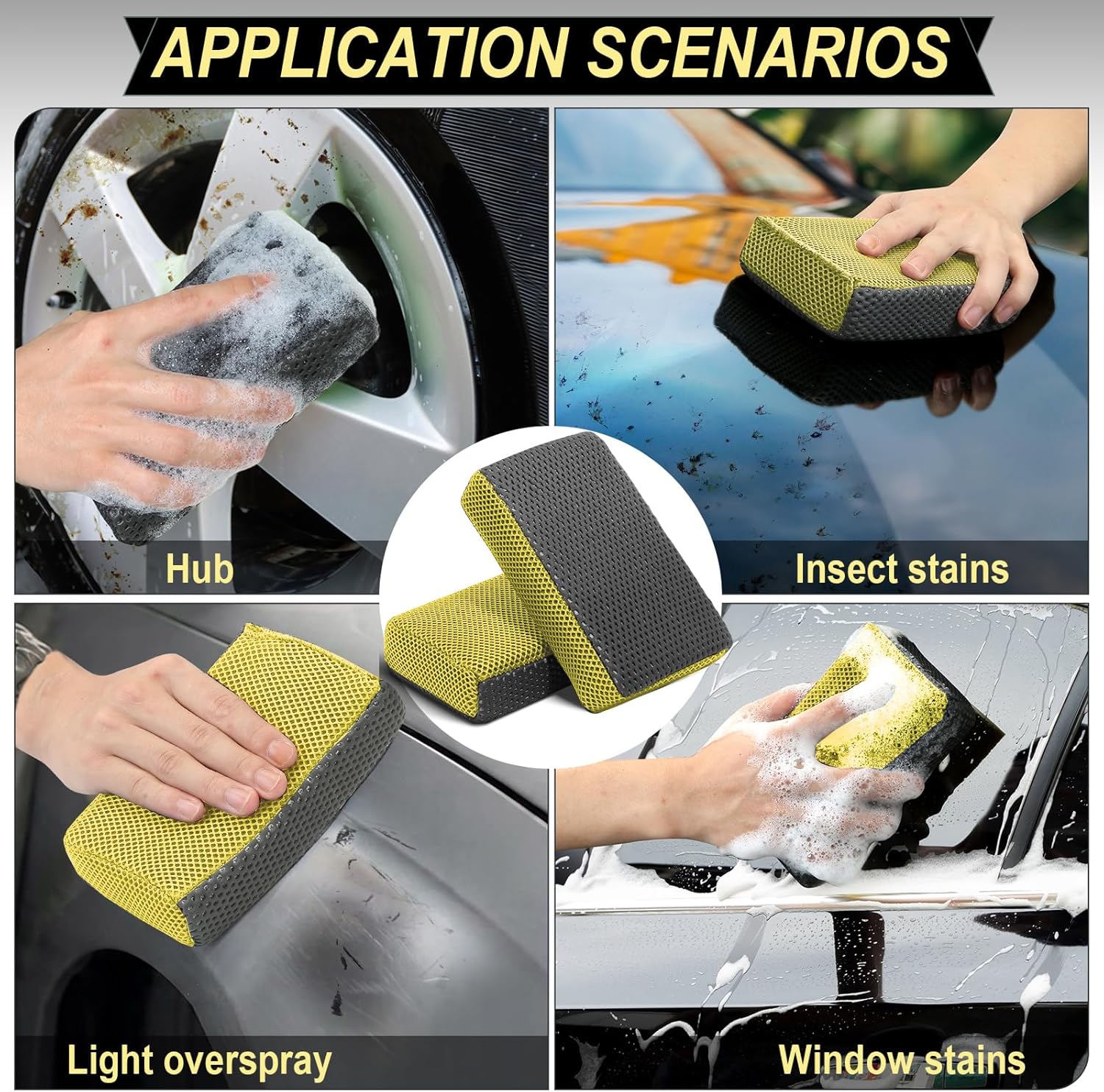 - New Upgraded Car Cleaning Sponge: JIURAIN 2-in-1 car wash sponges are great for easily removing stubborn stains, roadside splatters, road tar & spray paint from car paint and glassβno traditional clay needed. Wipe gently restores shine, delivering professional-level care