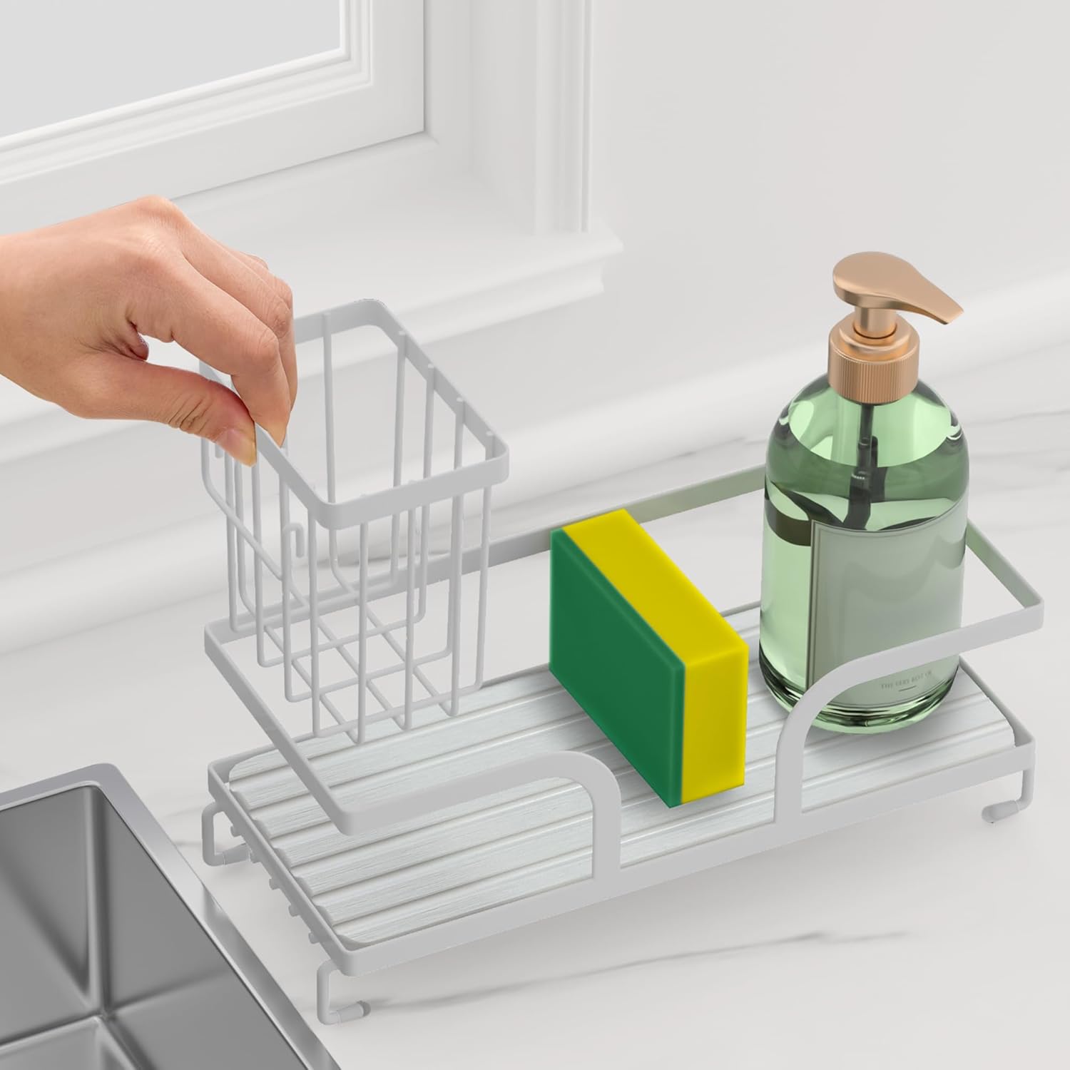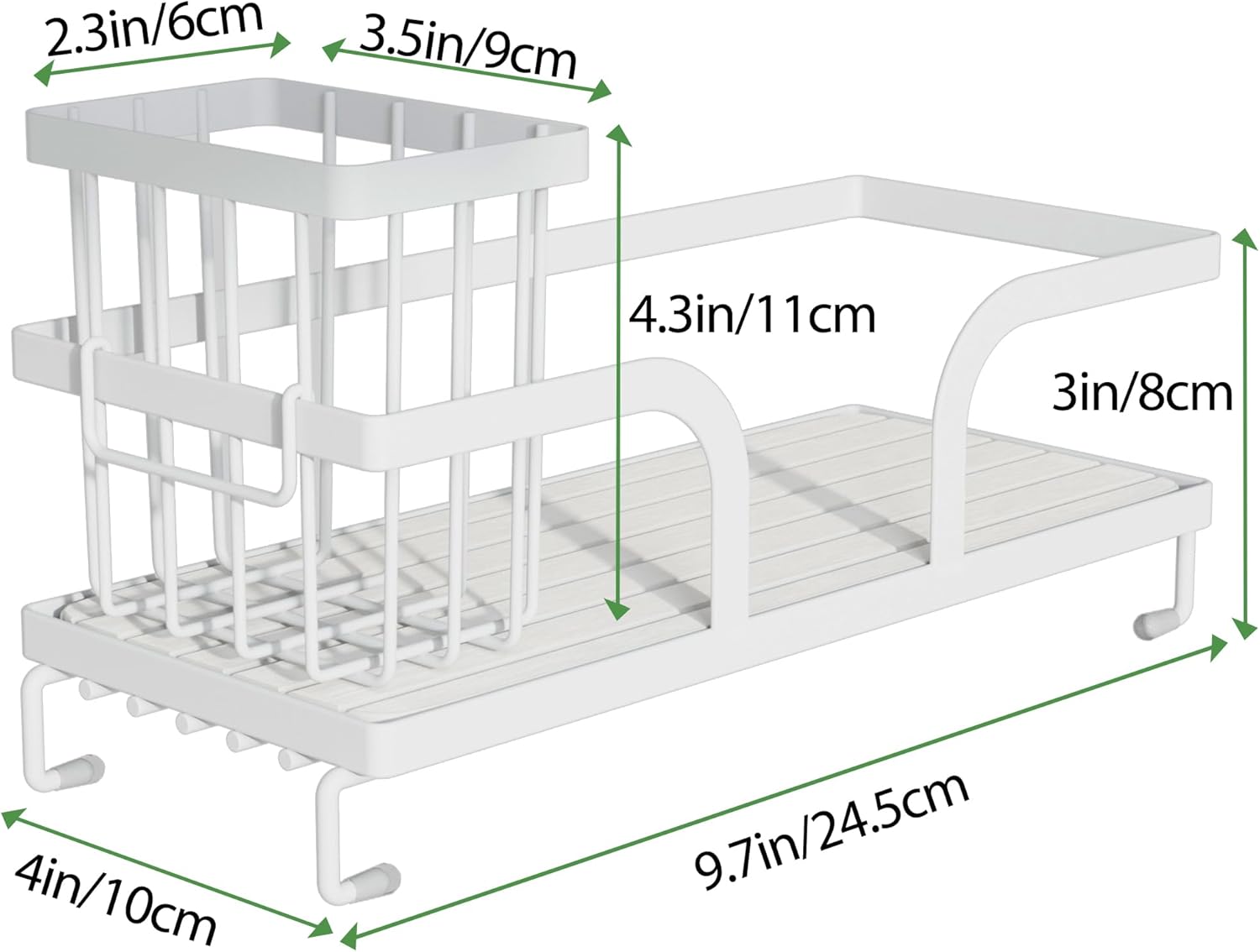 - Large Storage Capacity: Our kitchen sink caddy measures 9.7" x 4.2"x 3.2" and can hold cleaning bottles, sponges, dishwashing brushes, long handled brushes, and more