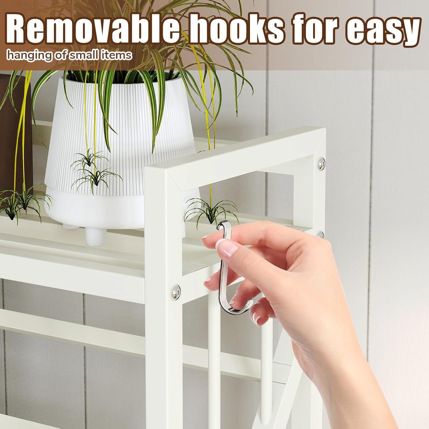 - Lots of space: our rolling book cart have 5 layers, you can store many books, and the top layer can also put potted plants or some small decorations, you can collect all of them and put them in order. And we also send 4 small hooks, you can hang bags and other items next to the bookshelf