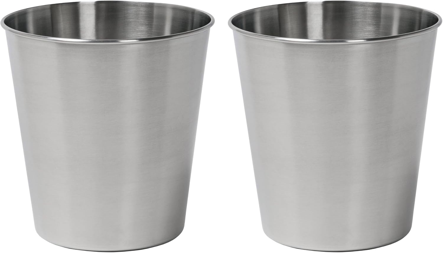 happimess HPM1113C-SET2 Nolan Modern Classic Smooth Steel 2 Gal Waste Bin for Kitchen, Office, Bathroom, Bedroom, Dorm, Brushed Steel (Set of 2)