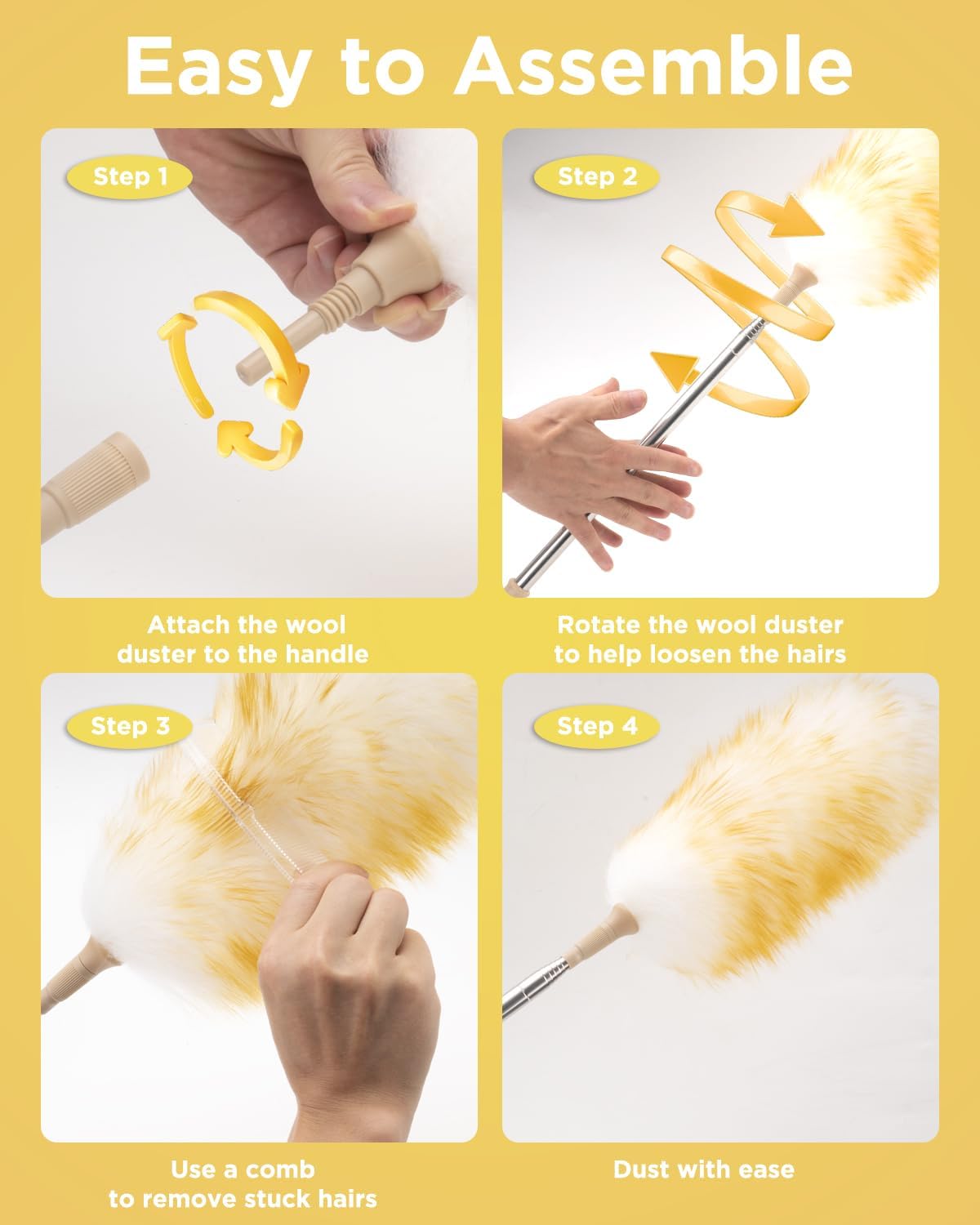 - 【ELEGANT DESIGN】This duster combines effortless cleaning with decorative elegance, featuring a lightweight stainless steel pole and non-slip handle that's both durable and space-enhancing.