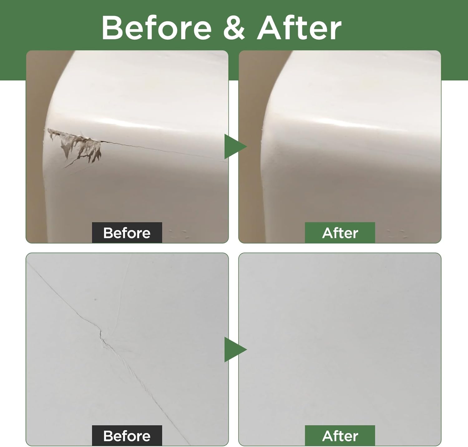 - ✅ Instant Ceramic Repair:Fix chips, cracks, and scratches on ceramic tiles, porcelain sinks, and kitchen cabinets in minutes. The gloss white formula matches standard appliance colors, making it perfect for refrigerators, bathtubs, and backsplashes. No need to replace entire surfaces – just dab, dry, and enjoy like-new results!