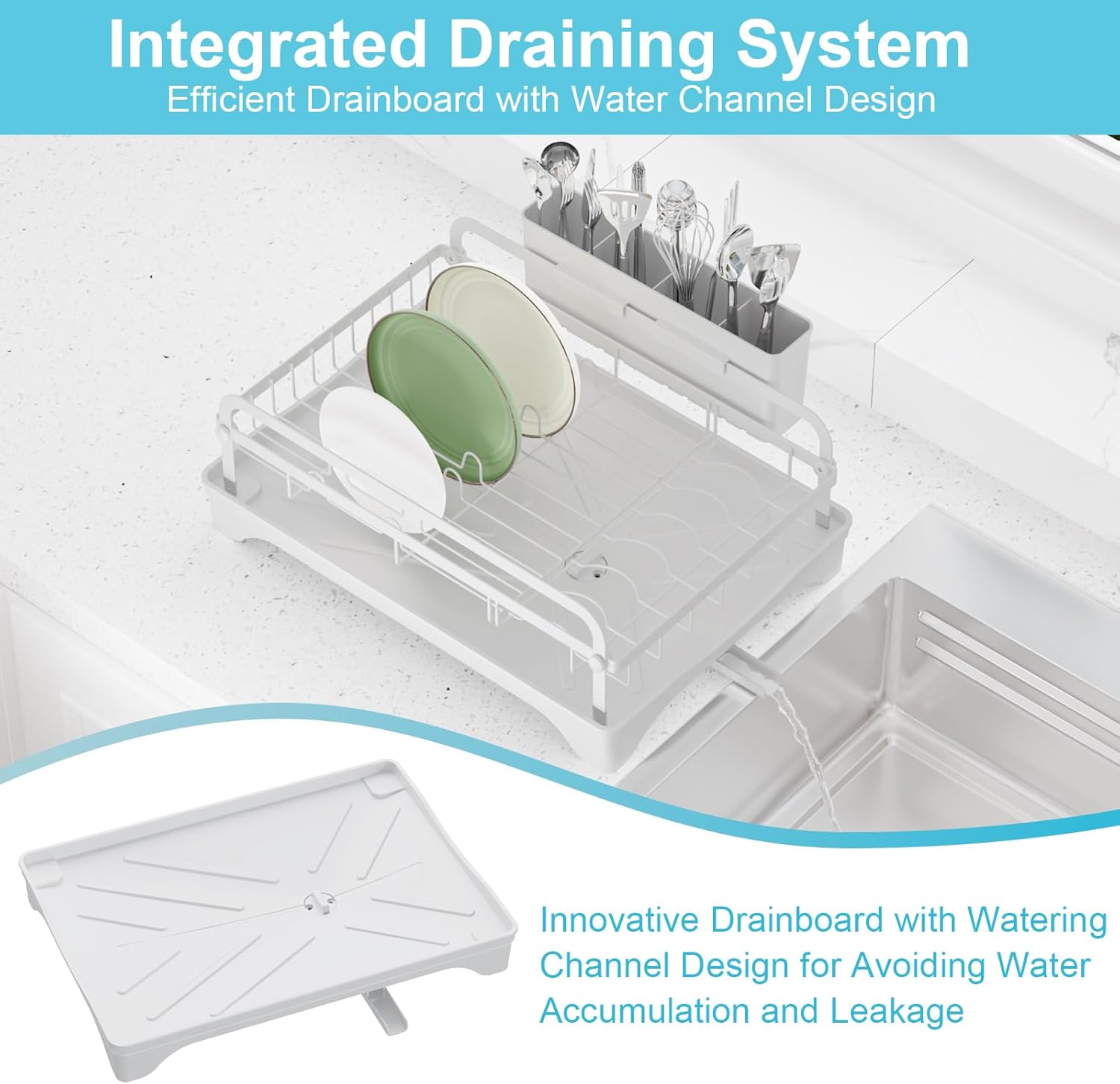 Dish Drying Rack for Kitchen Counter - Large Capacity Dish Drying Rack with Drainboard, Kitchen Sink Dish Rack, Countertop Dish Drainer Rack with Cutlery Holders Dish Dryer Rack White