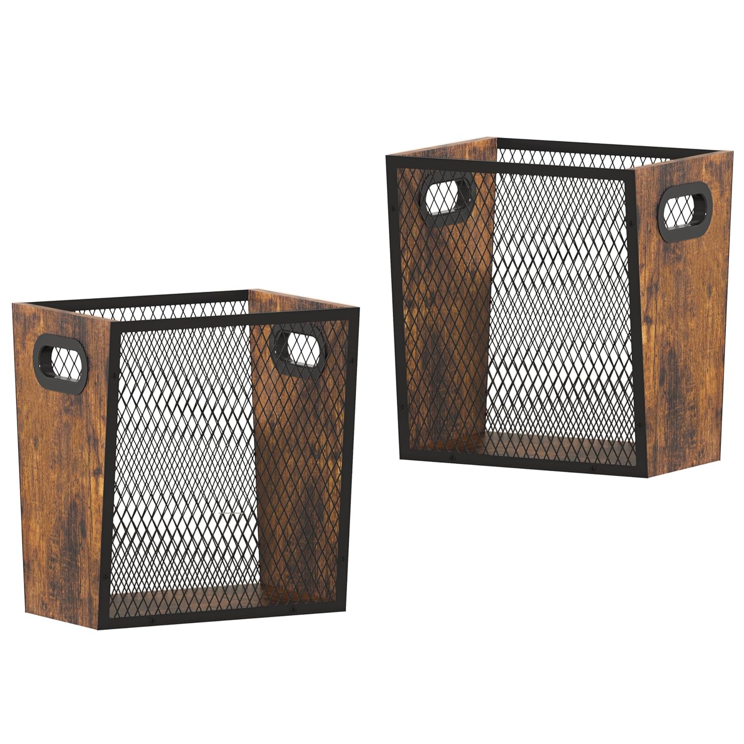 Piskyet Rustic Office Trash Can for Near Desk, 4.5 Gallon Unique Wood Bedroom Garbage Can,Vintage Wastebasket with Handle, Decorative Trash Can for Home Office,2pack 10.8" L x 7.8" W x 11.8" H