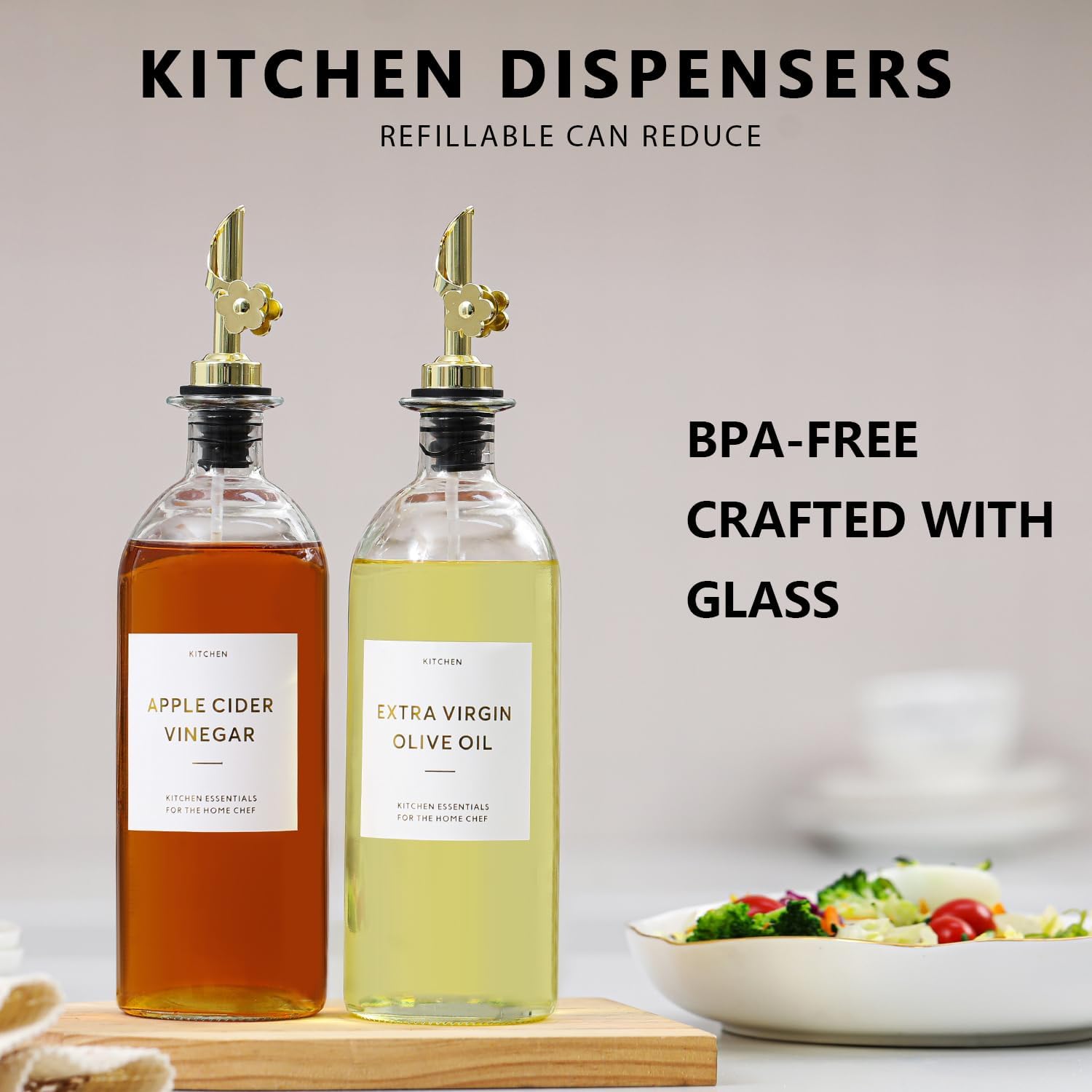 - KITCHEN ESSENTIAL - Worthy of sitting on your kitchen counter, The olive oil bottle for kitchen with label which can help you identify them easily, both decorative and practical, this oil dispenser bottles not only kitchen oil dispenser, but also kitchen décor.