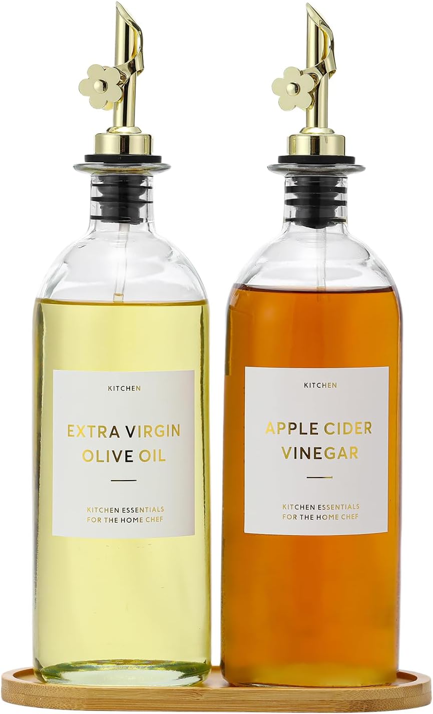 - IDEAL GIFT - Whether you are looking for oil dispenser bottle or kitchen accessories, this olive oil and vinegar dispenser bottle set is your best choice. It's also a perfect gift for your mother, family and friends, housewarming gift and Christmas gifts.