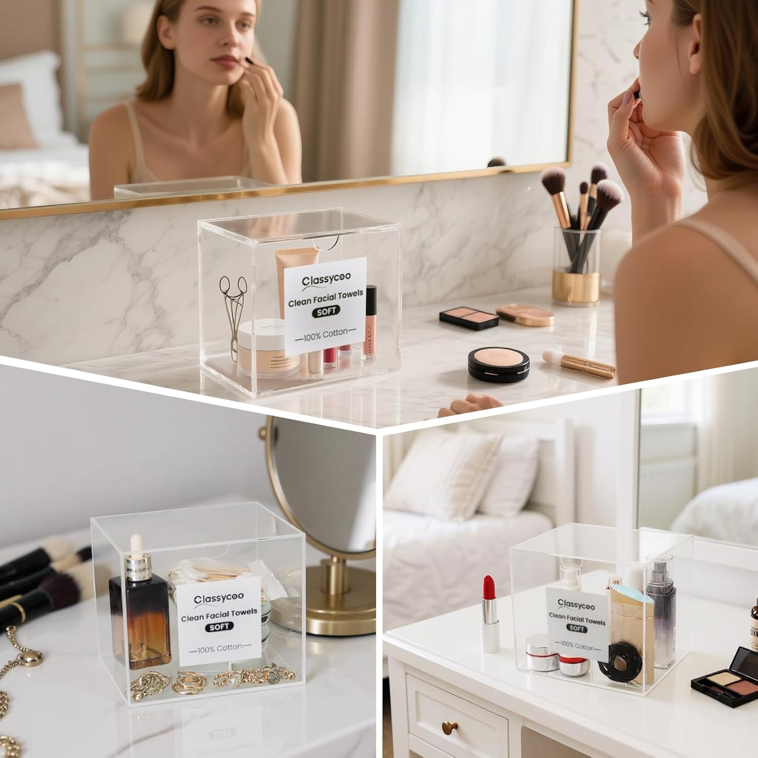 - Keep Your Home Organized & Easy to Clean: Marble Acrylic design lets you easy access to the facial towels. what you need without rummaging through drawers, saving time during your daily beauty routine.