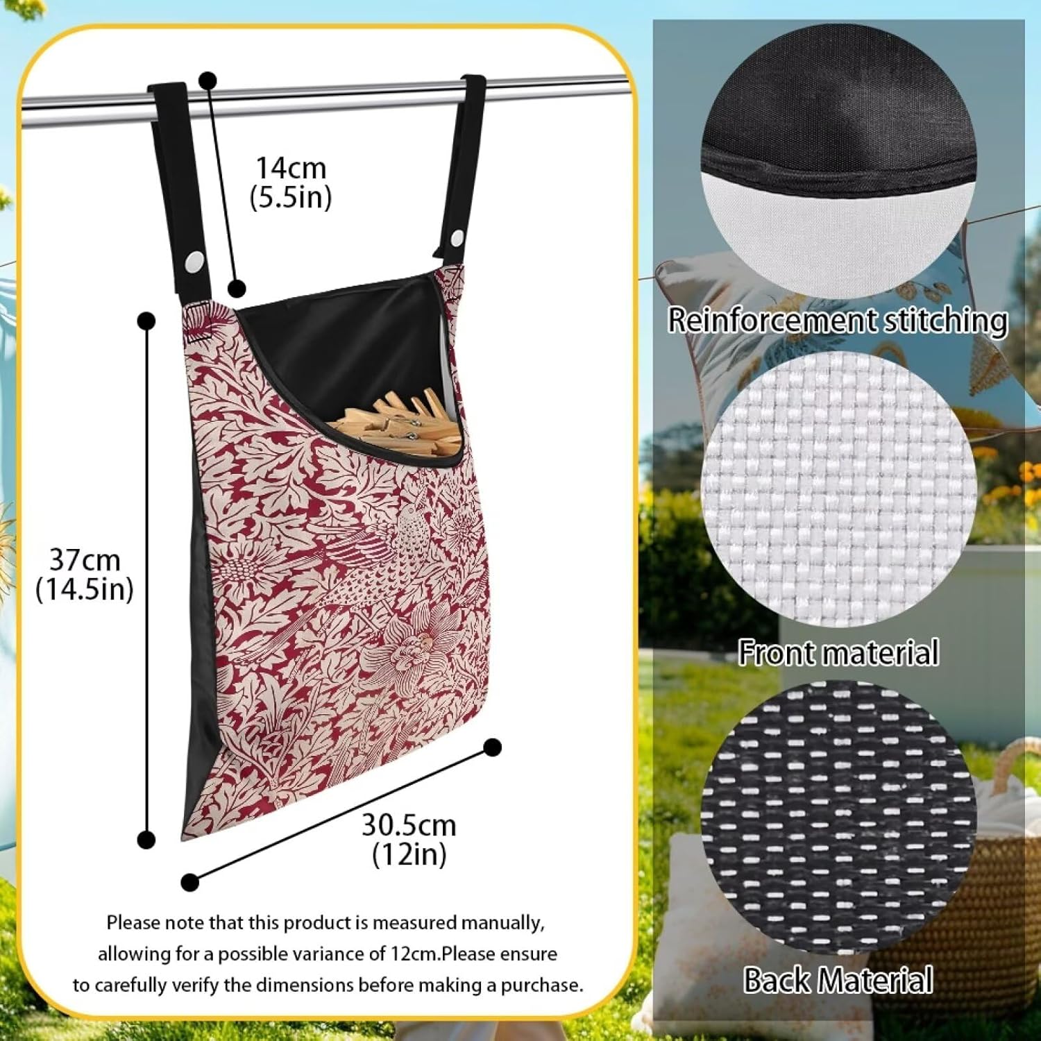 - [Practical Storage] 14.5x12in Large capacity space, easy to store wooden clothespins, gadgets, etc., openings designed for easy access, goodbye to scattered lost, balcony organizing a good helper.