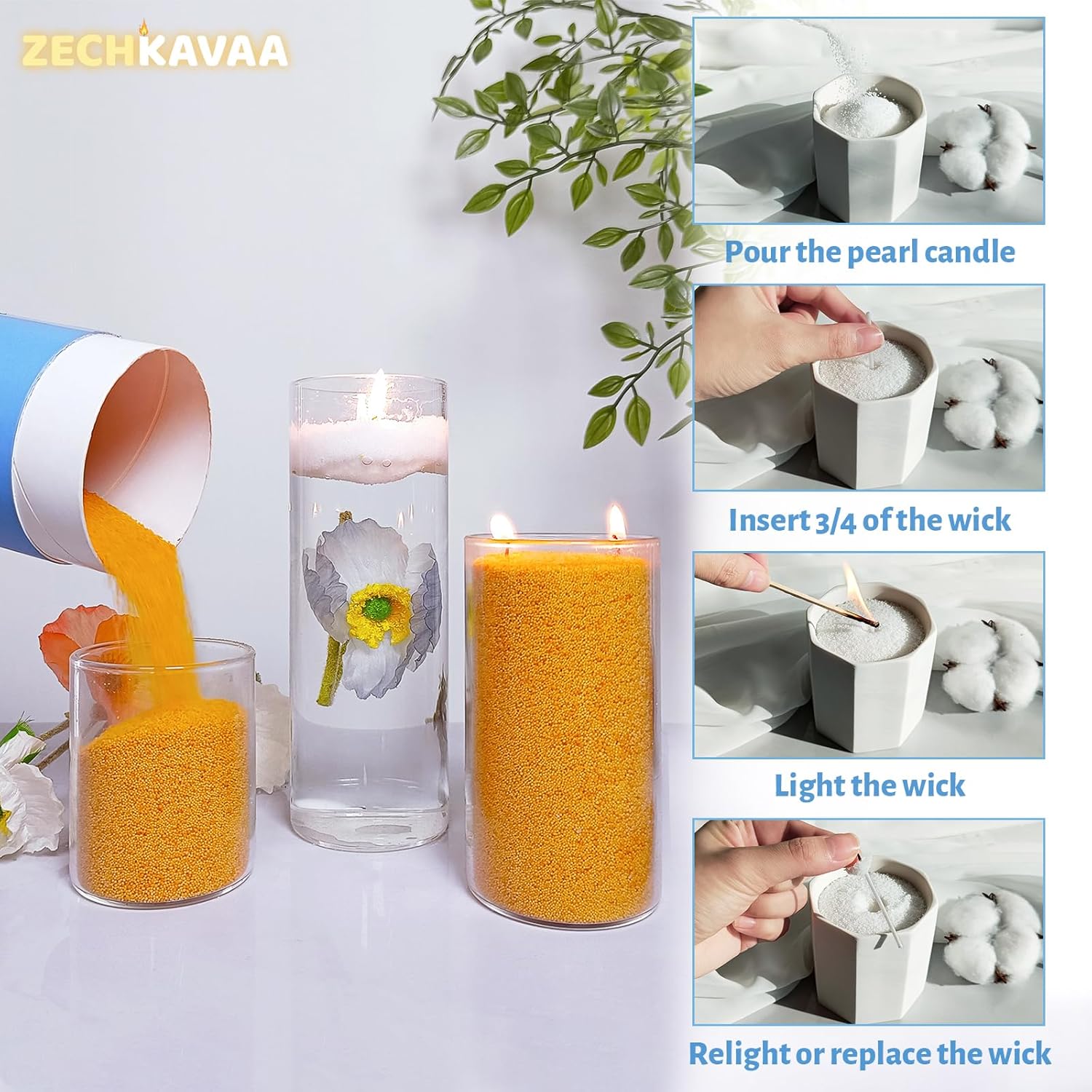 - 【Handmade Pearl Candles】Our refreshable candle sand powder provides a unique, reshapeable candle experience that lets your candles look brand new every time you light them. Just replace the wick to refresh your pearled candle.More flexible and decorative than other candles!