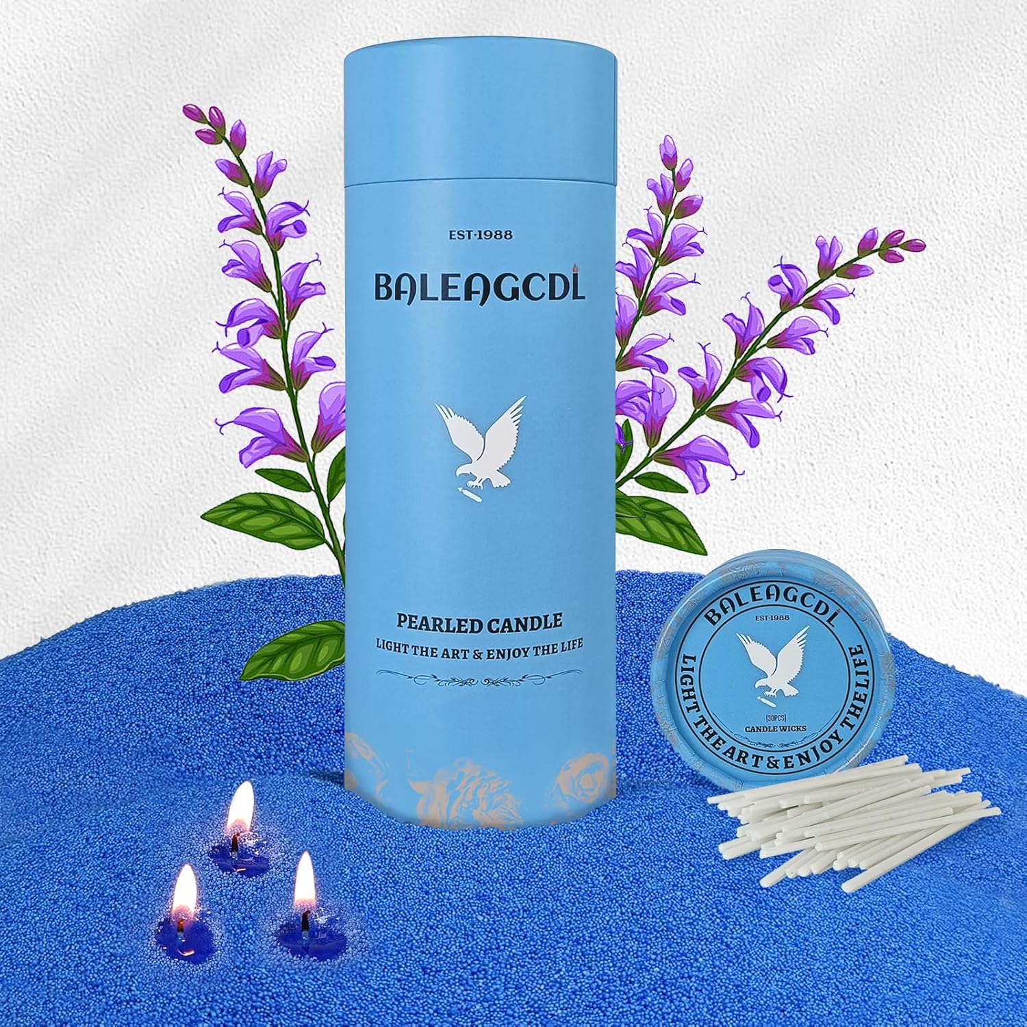 Salvia Scented Blue Pearled Candle 18oz Luxury Sand Candle Granulated Wax - 30 Cotton Wicks - Wax for Candle Making Decorative Candles Smooth and Clean Burning Lasts up to 120 Hours