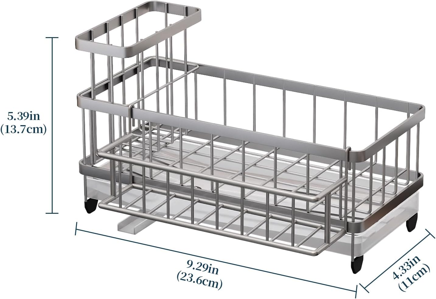 - [Generous Storage Capacity]: This sink organizer is 5.39*9.29*4.33 inches, it can accommodates high brush holder, dish soap dispenser, sink stoppers, and more in one compact space. with the Consumest sink caddy kitchen sink organizer you can save countertop space perfectly