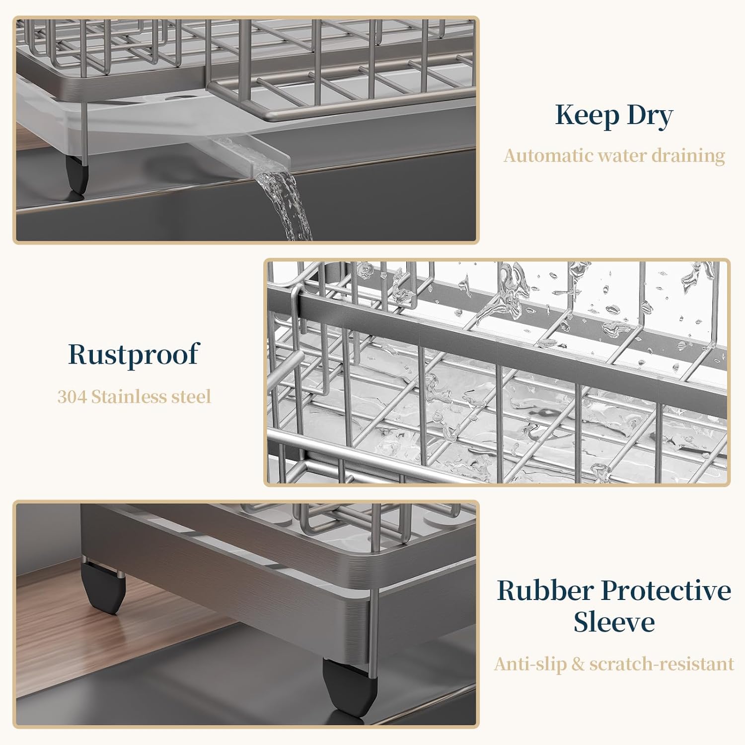 - [Anti-Slip Rubber Feet]: The bottom of the kitchen sink sponge holder is equipped with anti-slip rubber pads on each leg, providing a secure grip that prevents sliding or tipping over. Whether placed on a wet kitchen sink sponge holder or a dry counter, the added friction ensures stability and peace of mind. A smart solution for safer, clutter-free kitchen soap holder organization