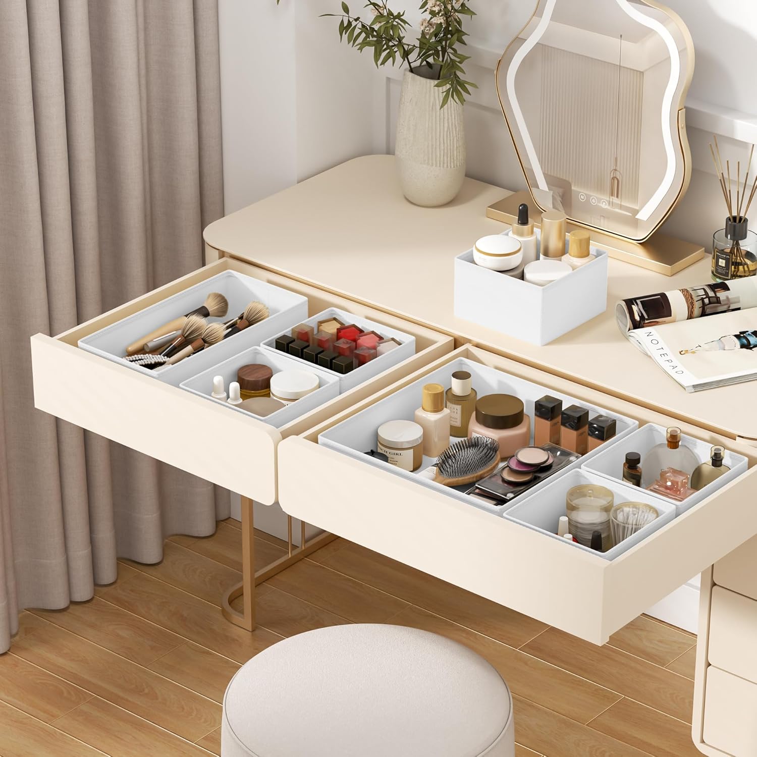 - Flexible Combination: This clothes organizer set includes 4 large square boxes (11.8" x 11.8" x 3.54"), 4 medium boxes (11.8" x 5.9" x 3.54"), and 8 small square boxes (5.9" x 5.9" x 3.54"), allowing for free combinations of 3 sizes for efficient and personalized organization. This dresser organizer is suitable for closets and other spaces