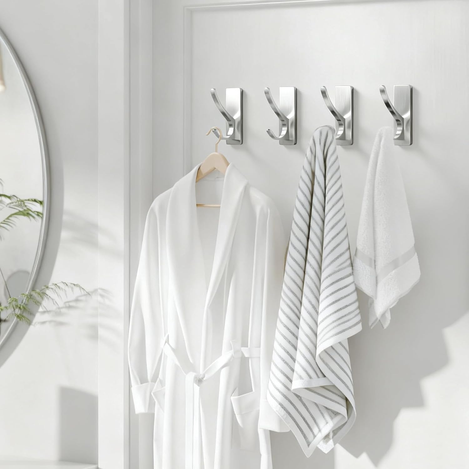 - 【Stainless】These sticky hangers for walls can be use in the wet bathroom, would not fall off or rust for long-term use.