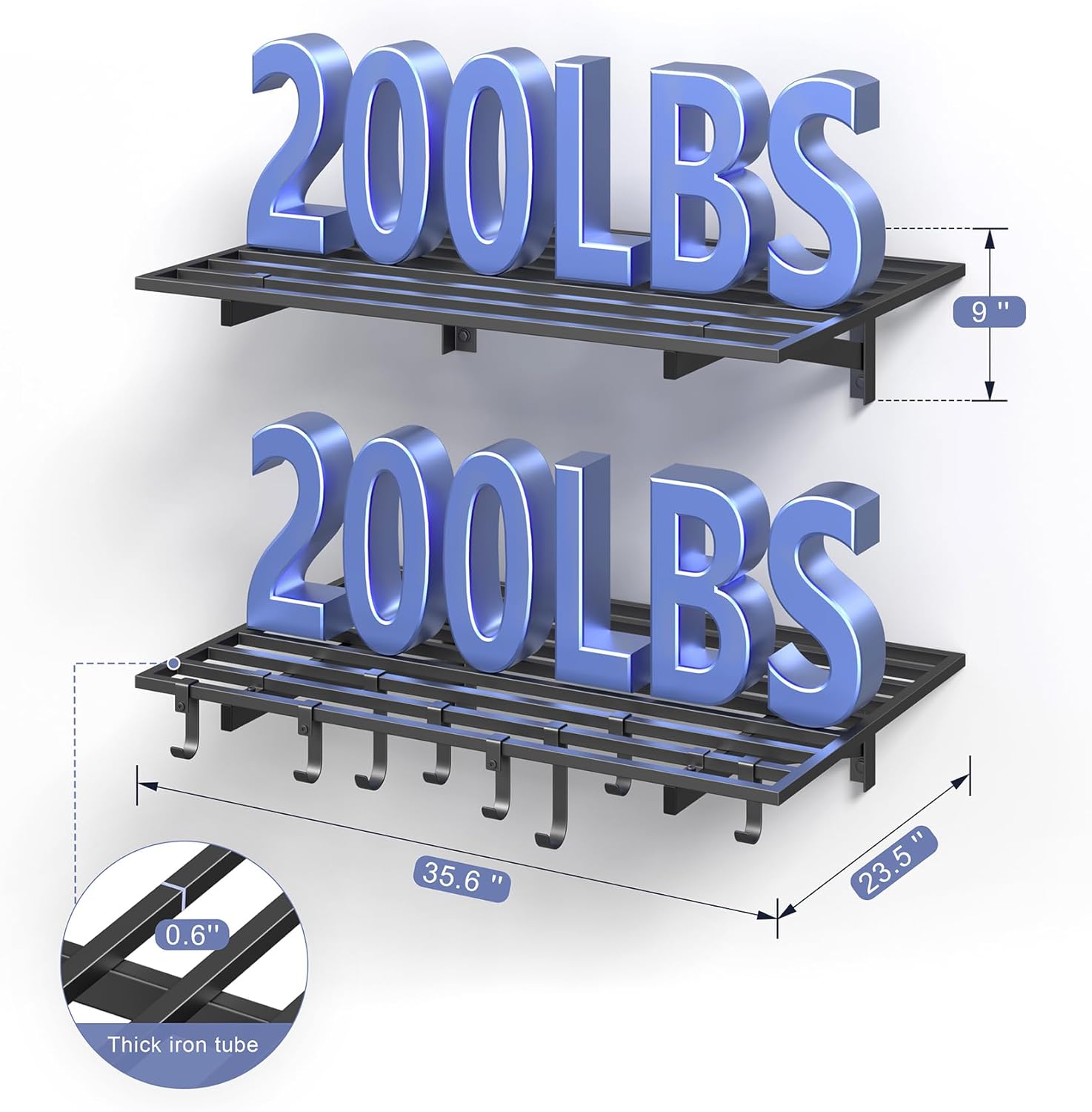 - PREMIUM STRENGTH & STABILITY: Engineered with heavy-duty steel, our wall shelf system features reinforced square tube supports, a seamless integrated frame, and secure U-hooks for superior durability. Every component undergoes rigorous quality testing to ensure maximum safety and long-lasting performance
