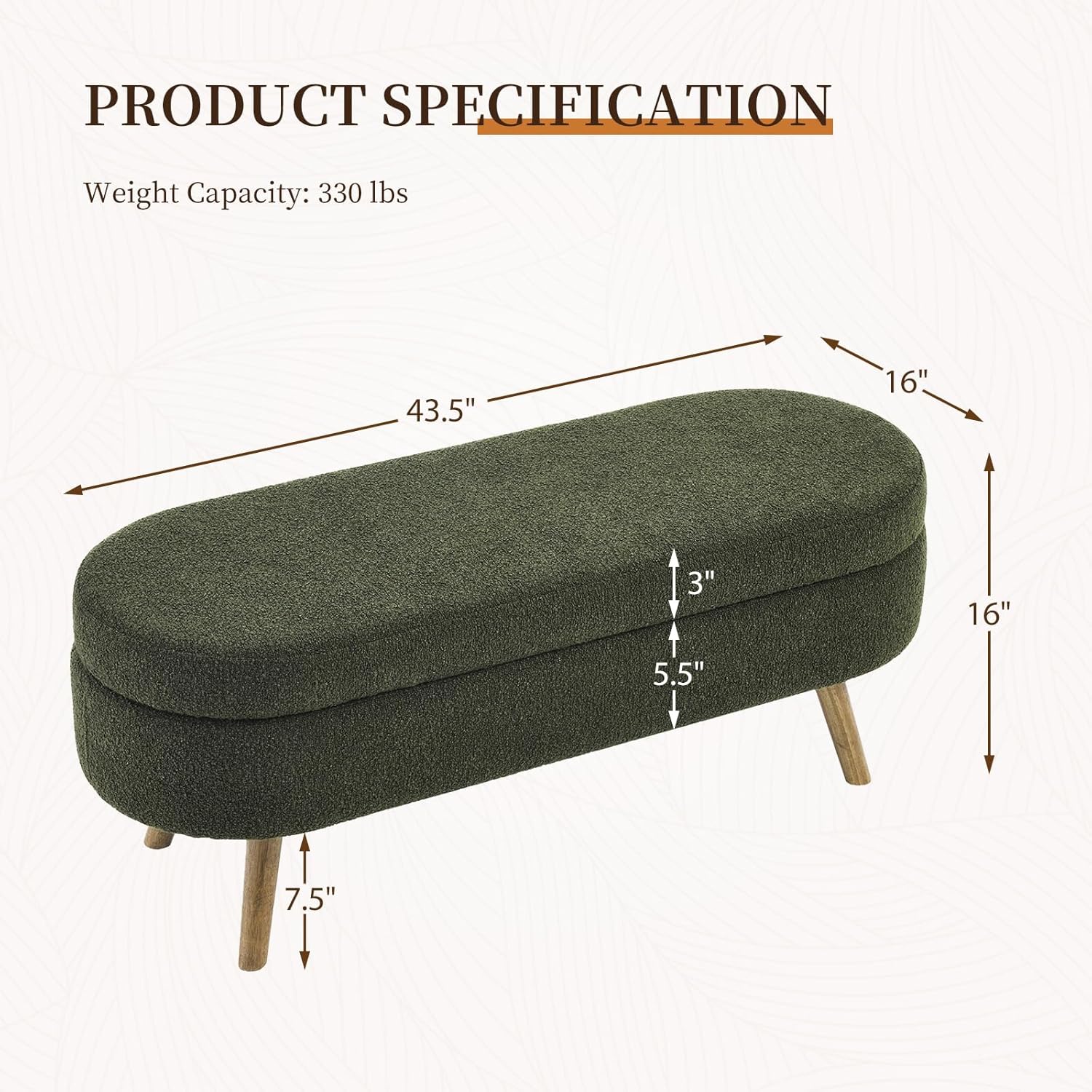 - [Designer Advice] -Available in faux leather, loop yarn, faux fur and linen, this storage bench would work well not only as a end of bed bench but as an accent piece in your entryway, living room or as extra seating in your closet. Drape an elegant designer blanked across it to create a chic contemporary look.
