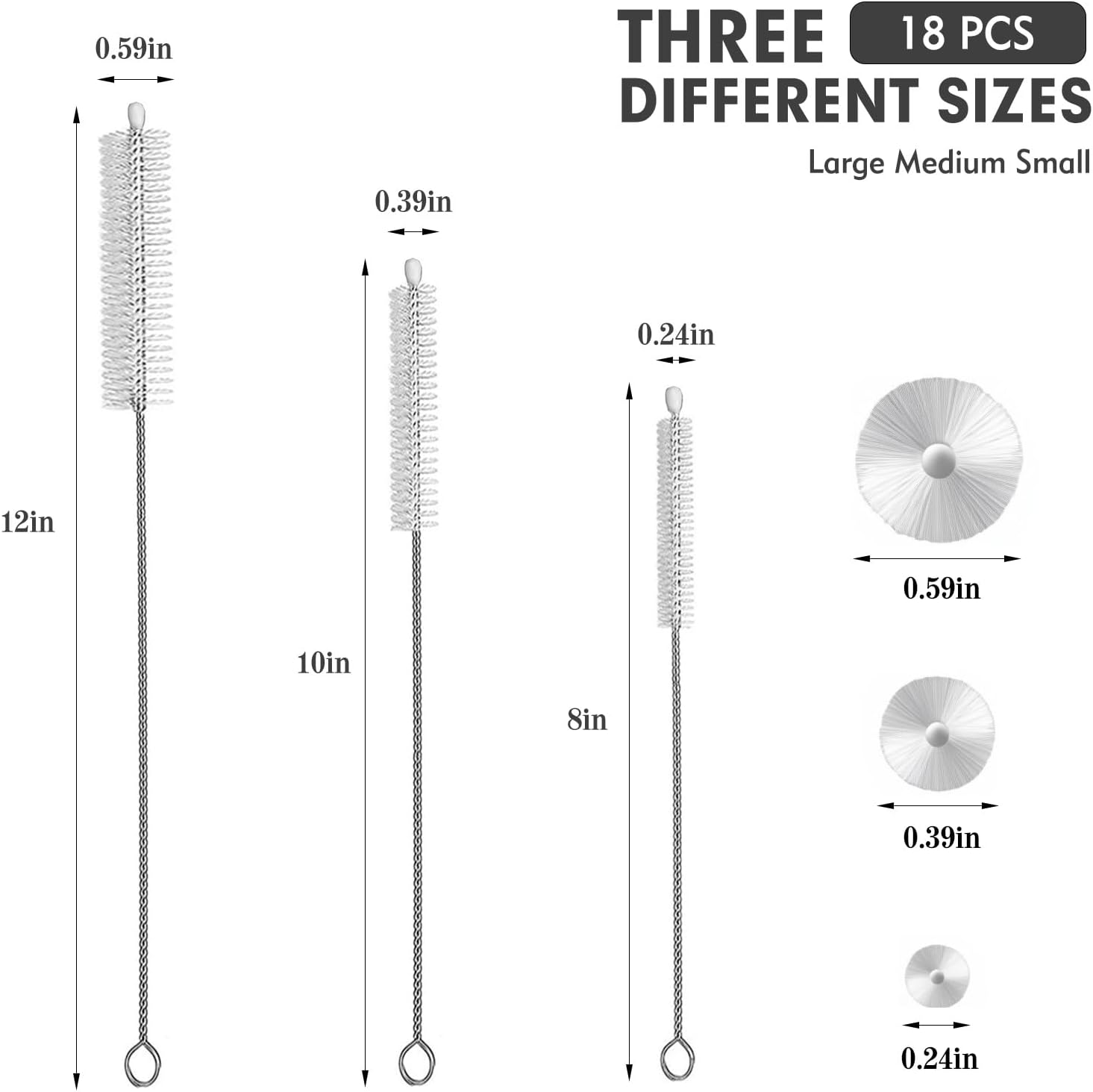 - 3-Size Multi-Purpose Straw Cleaner Kit:The 18-piece set includes 300mm long straw cleaner brush sizes, suitable for most straw cleaner brush types ( stainless steel, silicone). Helps reduce tool-mismatch in straw cleaning.