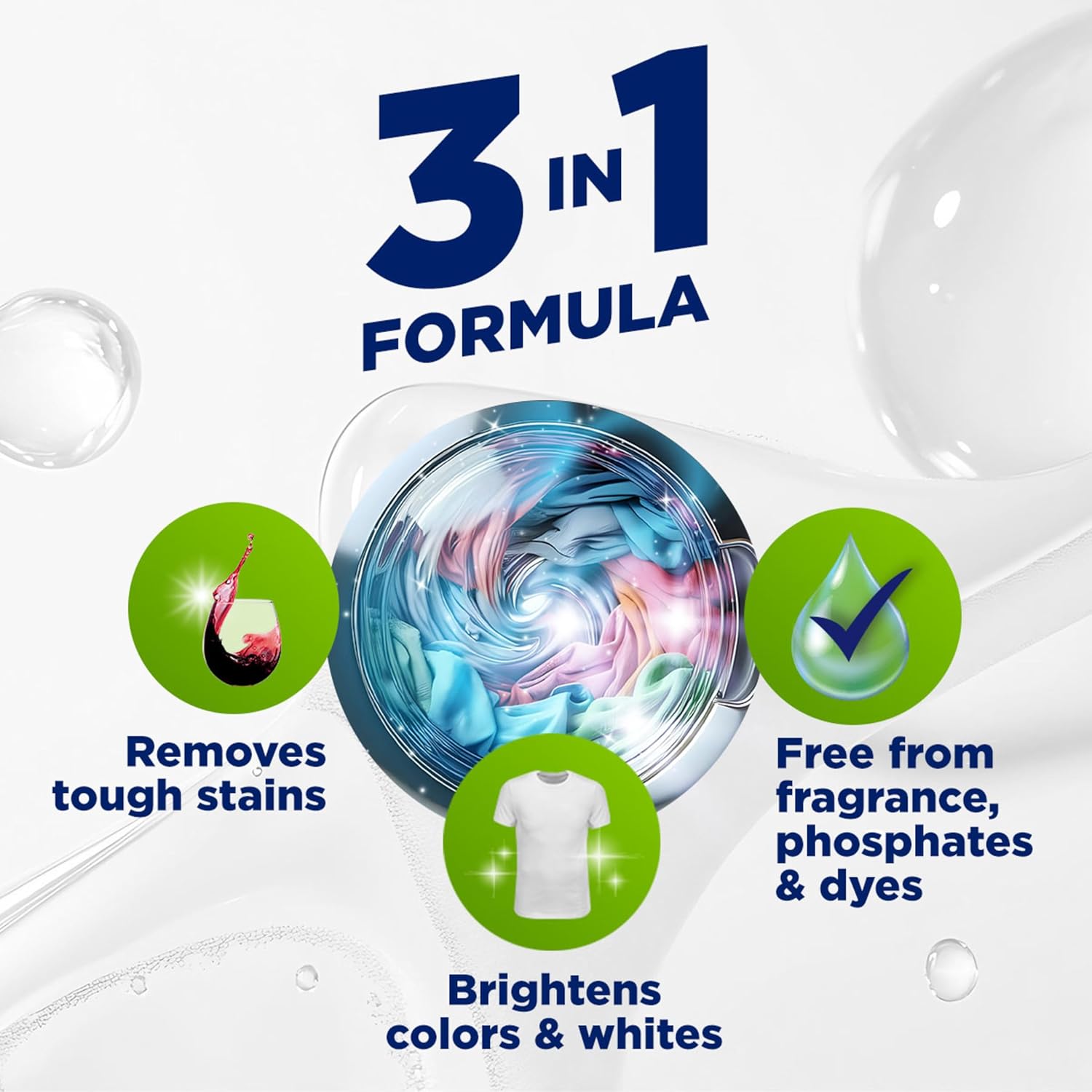 OxiClean Triple Action Free Versatile Stain Remover Powder, Use with Detergent, No Fragrance, No Dyes, No Phosphates, No Chlorine, Removes Stains, Brightens Colors and Whites, 4 lbs
