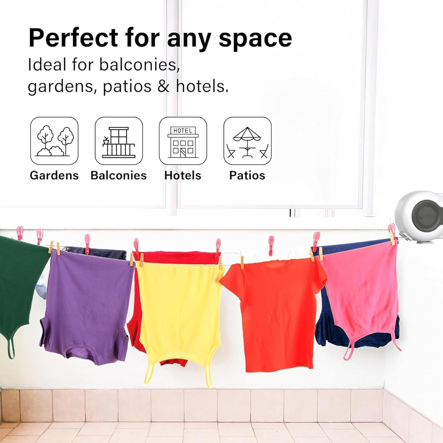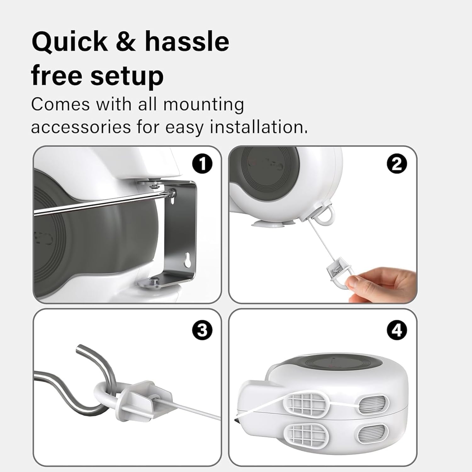 - Dual Retractable Lines for Maximum Drying Space – Enjoy nearly 100 feet of total hanging space with two retractable clotheslines, each measuring approximately 49 feet. Perfect for both indoor and outdoor use—laundry rooms, bathrooms, balconies, backyards, and more.
