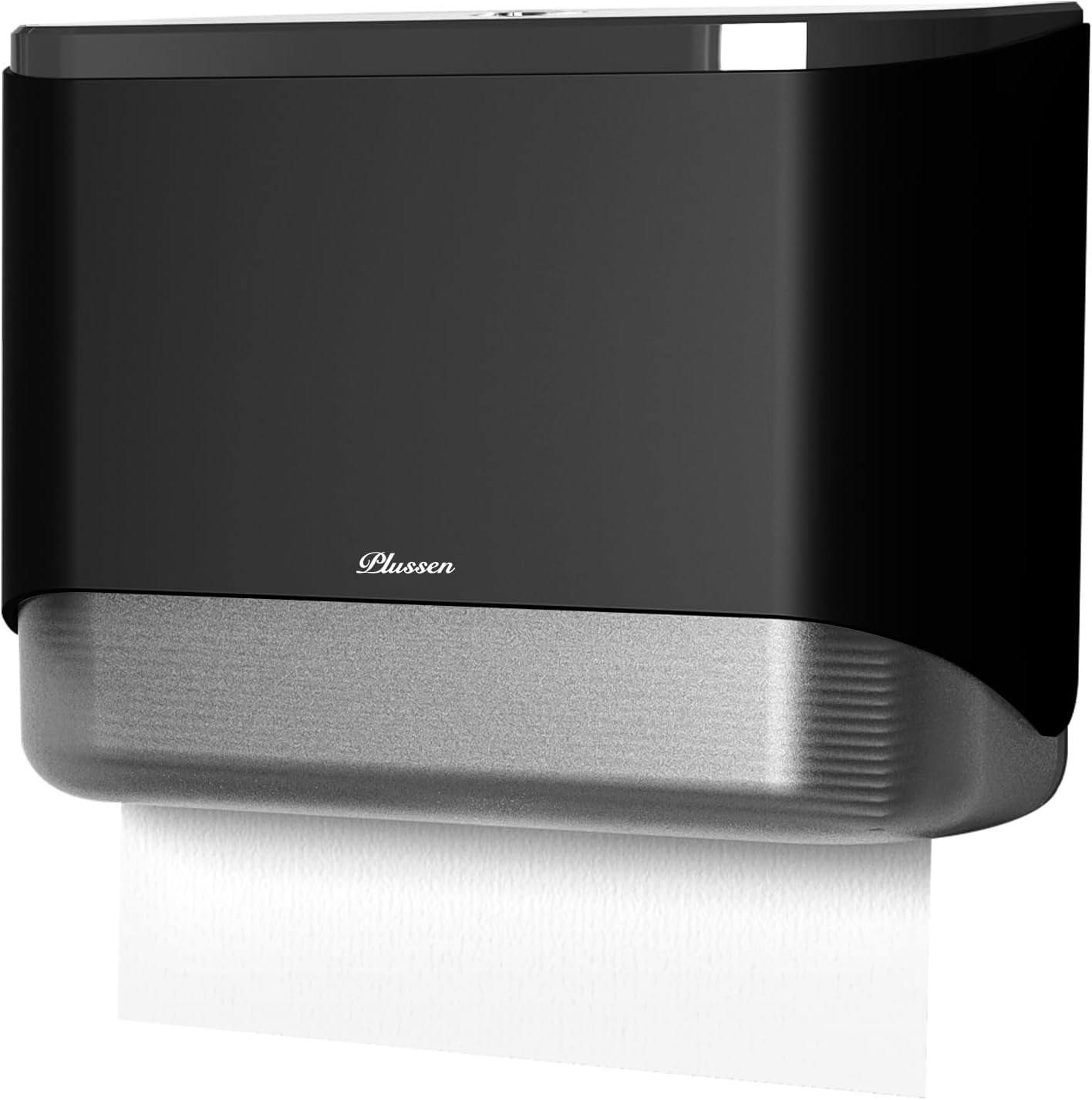 Commercial Paper Towel Dispenser Wall Mount C-Fold Multifold Trifold Towels Dispenser for Bathroom,Two Key Lock Design No-Drilling Adhesive & Screws Included, ABS Built (Black-PN6012)