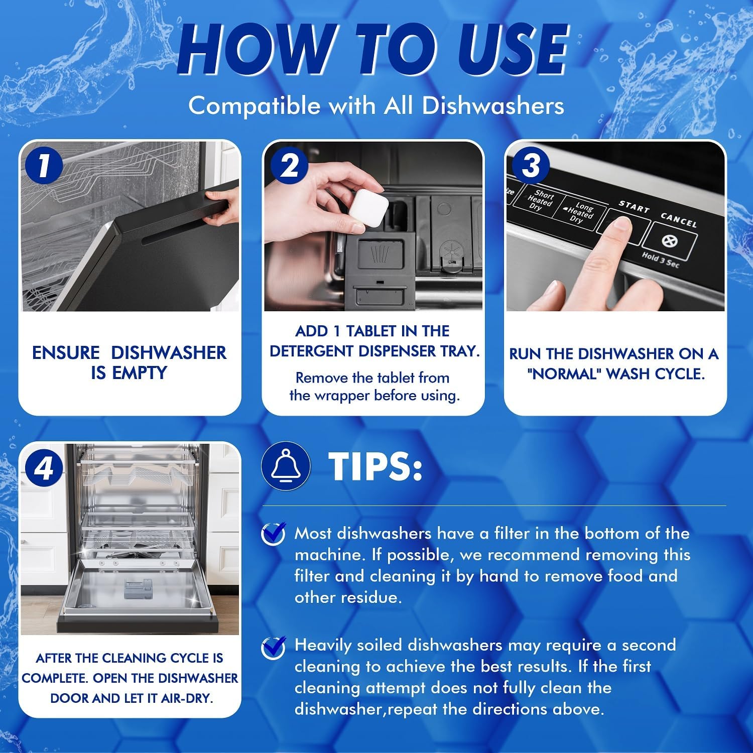 - Protect your $$$ investment! Monthly dish washer cleaner tablets prevent clogs + damage. Extend lifespan 2X! Just 1 tablet in an empty cycle = peak performance forever.