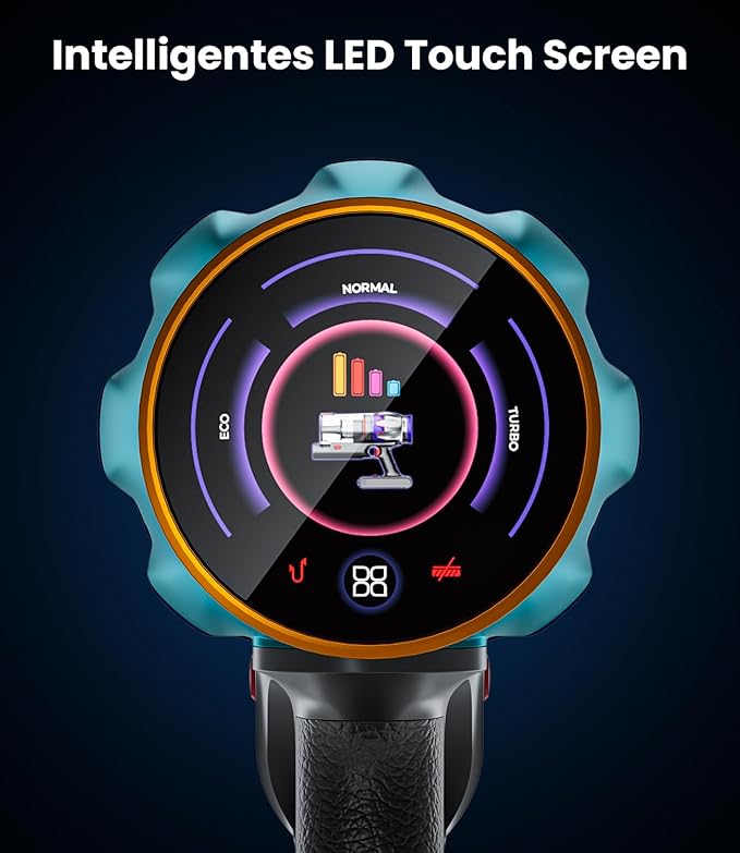 - 【LED Smart Touch screen】This household cordless vacuum is equipped with an LED smart touch screen. You can switch the suction mode by touching the screen, and monitor the suction status, remaining power, dust cup fullness and filter brush entanglement reminder of the cordless vacuum cleaner in real time, so you can enjoy smart and convenient cleaning.