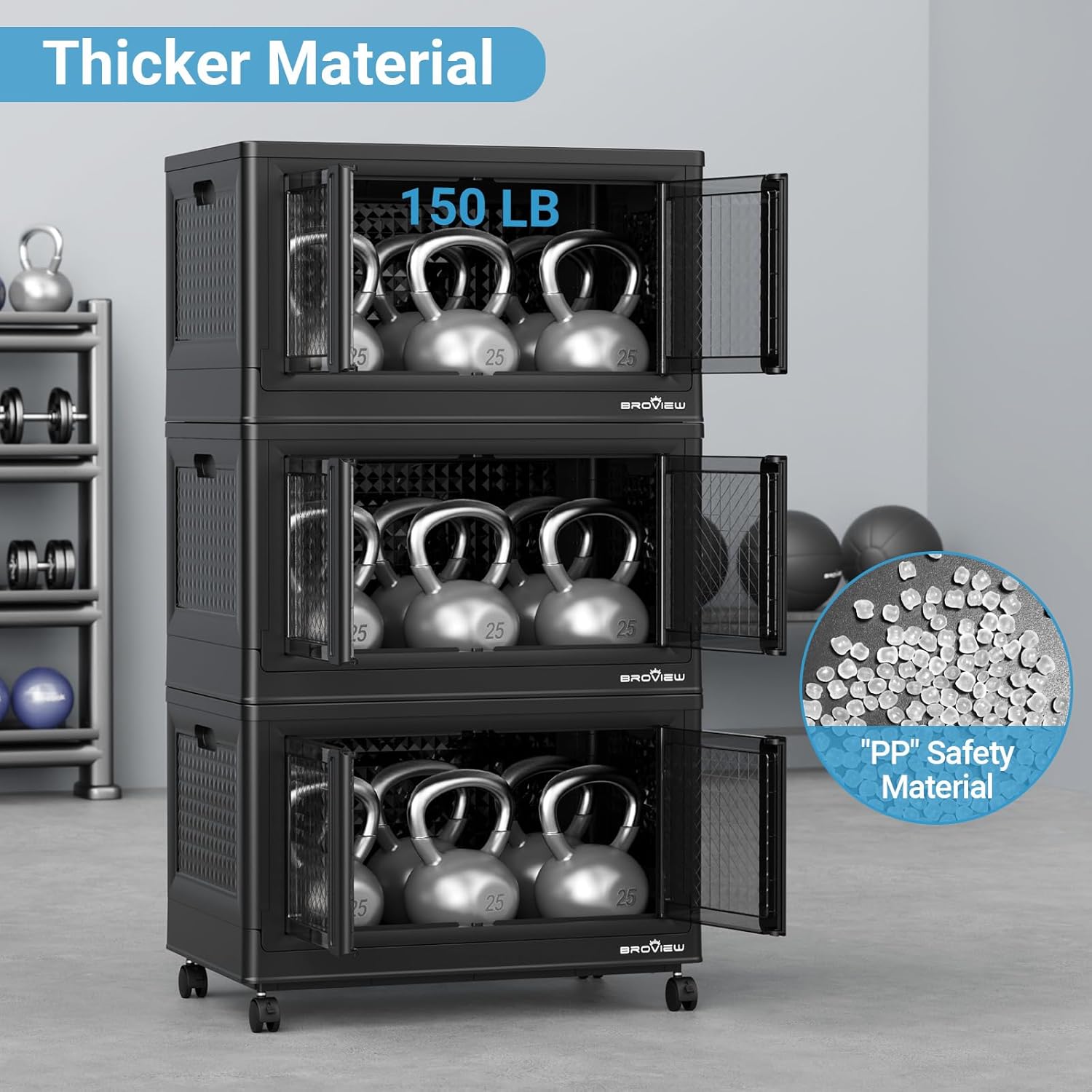 - 【Stackable and Foldable Design】 You can stack different numbers of plastic storage bins you want, such as bedside cabinets, clothes cabinets, bookcases, kitchen cabinets, etc. With roomy capacity, odorless, and foldable design, these storage containers are perfect for your closet organizer, laundry organizer, trunk organizer, garage tote, playroom storage, book storage shelves, classroom bins, and dorm storage box.