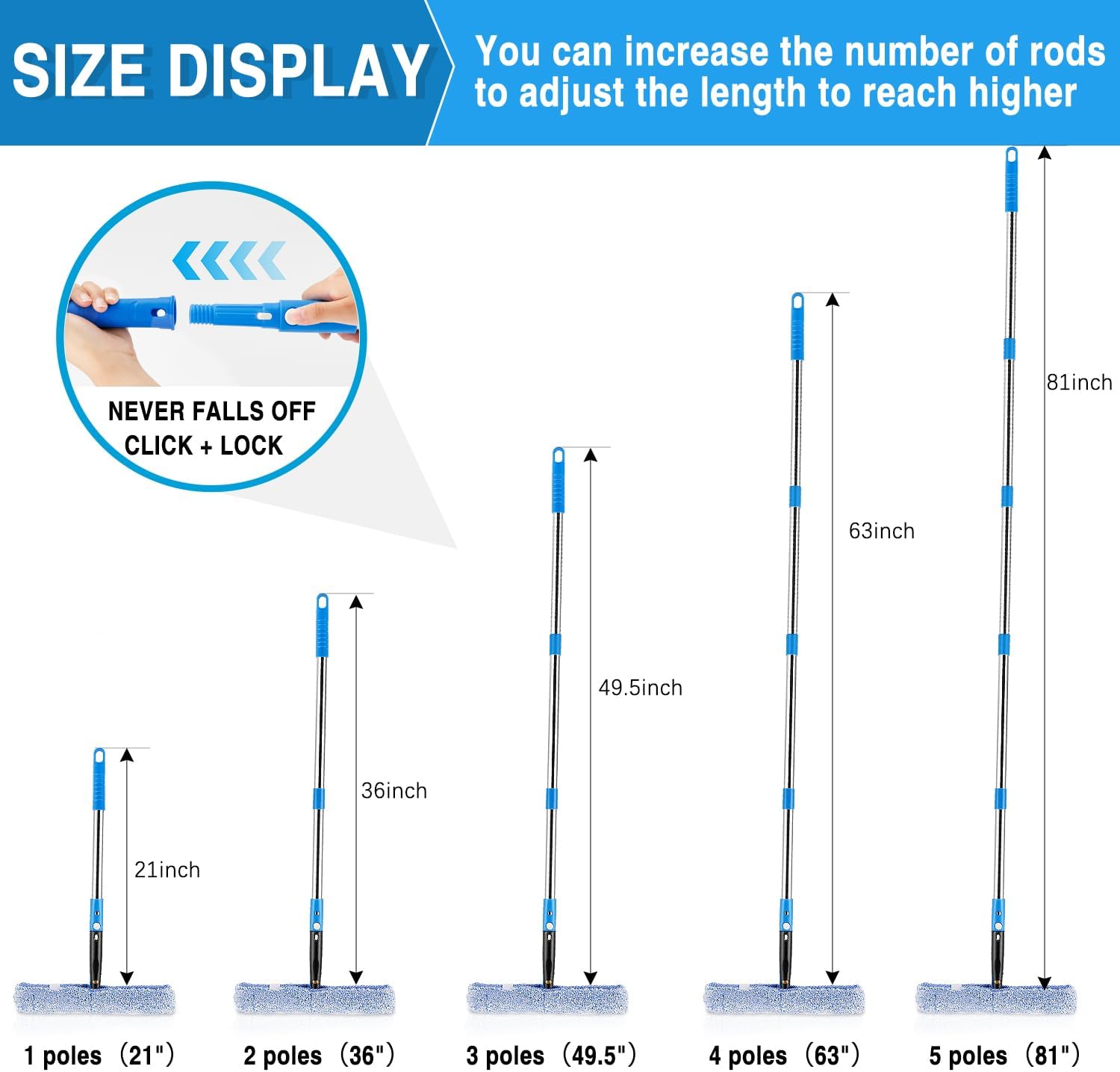 - Safe High Cleaning: Secure pole attachments prevent ladder climbs; Lightweight setup reduces arm strain during long tasks