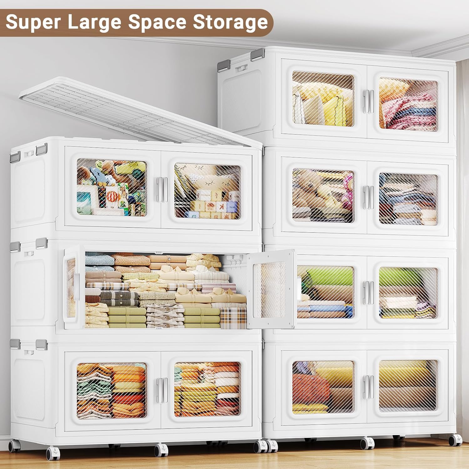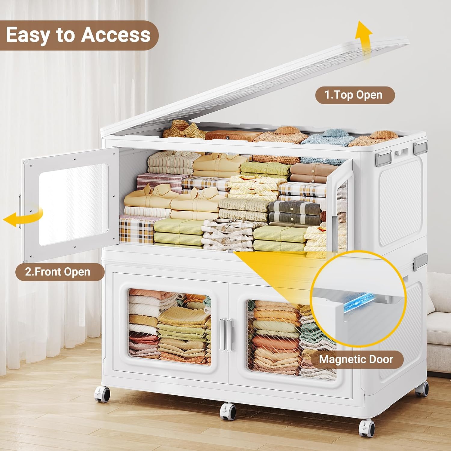 - 【Dual Opening Doors & Easy Access】Broview extra large storage bins feature front double magnetic doors with easy-pull handles for daily quick access and a top lid for direct retrieval of large items like blankets. The huge storage box capacity equivalent to multiple small drawers, they enable organized, multi-level storage—perfect for closets, bedrooms, or nurseries.